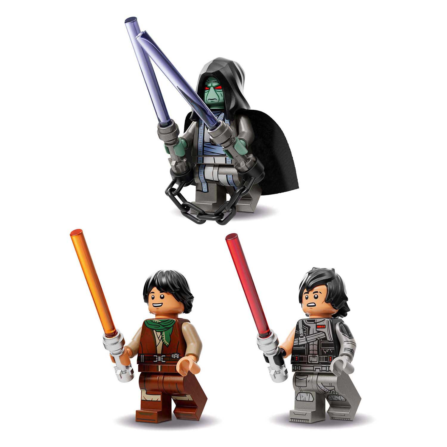 3 LEGO® Star Wars™ minifigures – Sig Greebling with a lightsaber, Darth Dev with a lightsaber, and Solitus with a double-bladed lightsaber and chain