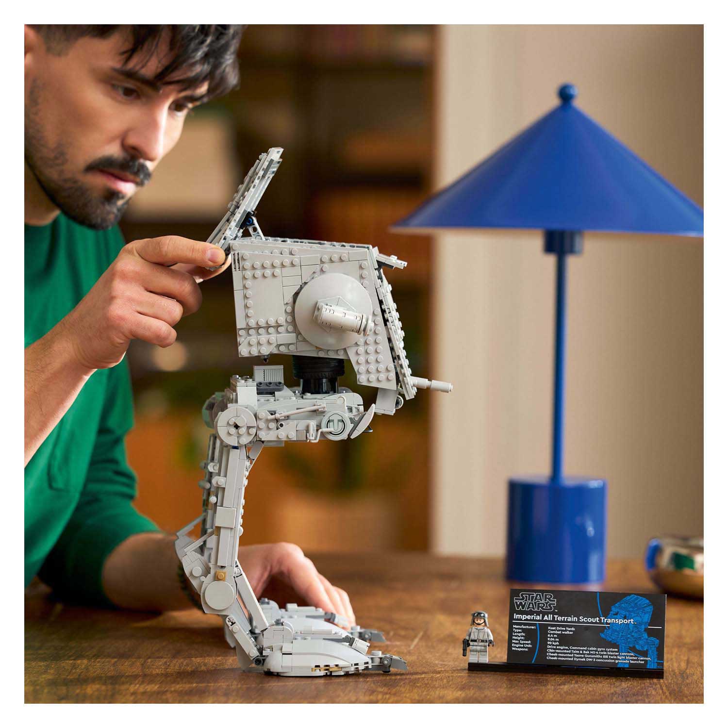 Build-and-display model – display your creation next to the AT-ST information plaque and the unique LEGO® Star Wars™ minifigure of an AT-ST driver with the Imperial emblem on his arms and a blaster pistol.