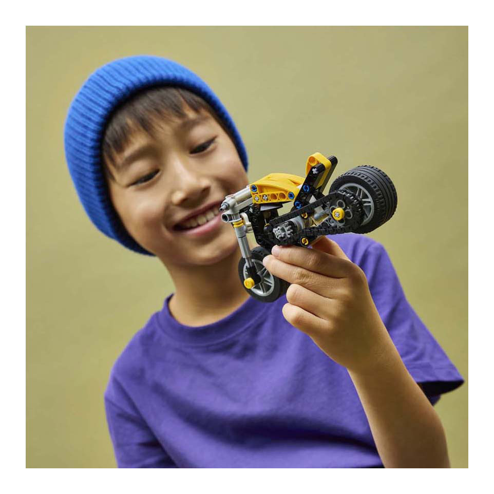 High-speed adventures await boys and girls aged 7 and up with this toy motorcycle. Kids will have loads of fun building this LEGO® Technic Yellow Motorcycle (42225). Then it’s time for action as they test the steering and explore how the 3-piston engine works. This STEM building set makes a great gift for kids who love building and playing with toy vehicles. The realistic movement and mechanisms of LEGO Technic sets introduce young LEGO builders to the world of engineering in an approachable and lifelike way. Kids can build confidently with the LEGO Builder App, which lets them zoom in, rotate their model in 3D and track their progress with easy-to-follow digital instructions. The set includes 151 pieces. ENGINE MODEL BUILDING KIT – The LEGO® Technic Yellow Motorcycle (42225) building set provides hours of fun for boys and girls aged 7 and up who love toy vehicles STEERING & ENGINE – This toy motorcycle features working steering and a 3-piston engine that’s connected to the rear wheel by a chain STEM BUILDING SET – Showing how different parts of an engine work, this building set gives kids a fun introduction to engineering concepts while developing new STEM skills ACTION-PACKED FUN – Inspire the imaginations of young car fans as they build, explore and play with this motorcycle building set GIFT IDEA – This LEGO® Technic motorcycle makes a great birthday gift or little surprise for boys and girls aged 7 and up DISCOVER EVEN MORE SETS – Discover more action-packed fun with a range of LEGO® Technic sets (sold separately), featuring realistic movement and mechanisms to inspire young builders A FUN BUILDING EXPERIENCE – The The LEGO® Builder app guides kids on an intuitive building adventure. They can save sets, track their progress, zoom in on models and rotate them with 3D instructions as they build. DIMENSIONS – The motorbike in this 151-piece set measures over 3” (8cm) high, 6” (16cm) long and 2” (6cm) wide.
