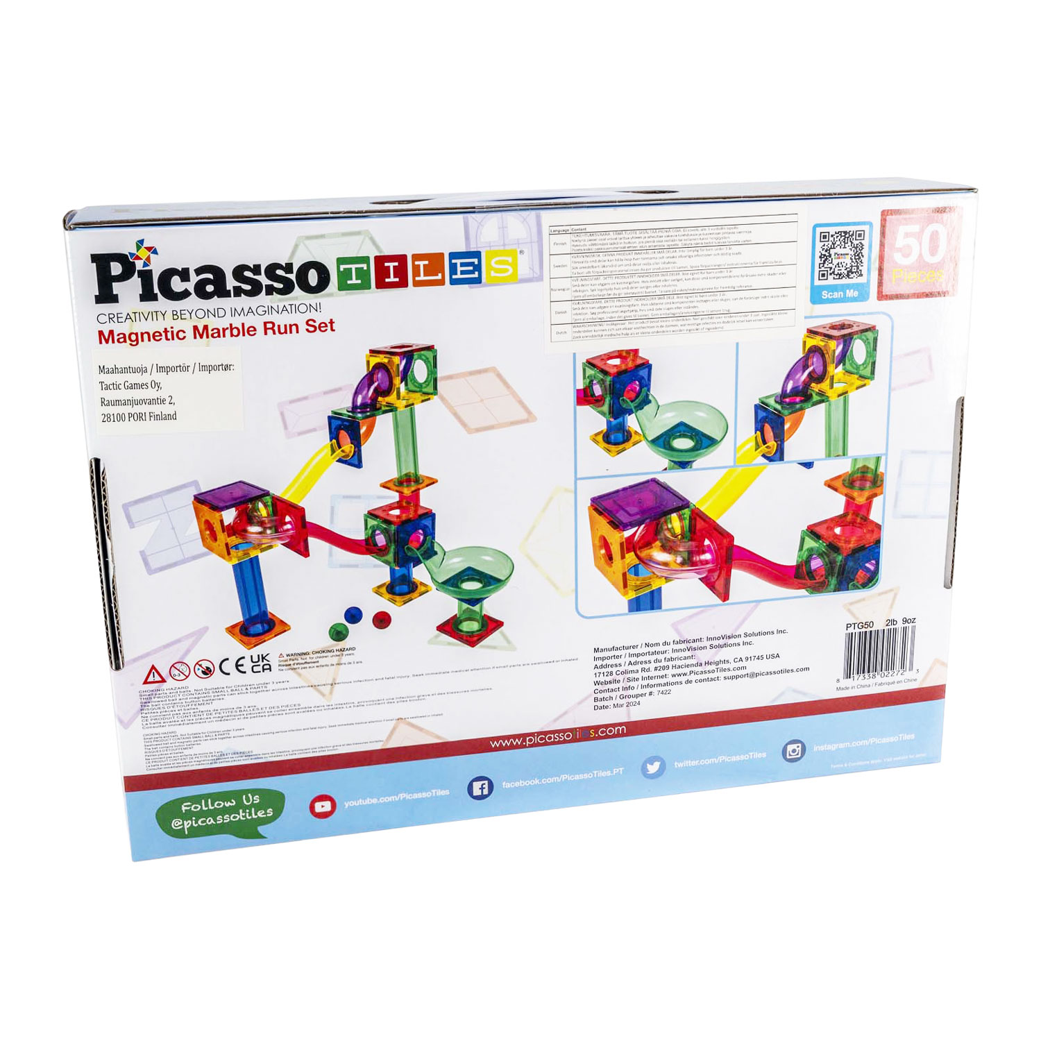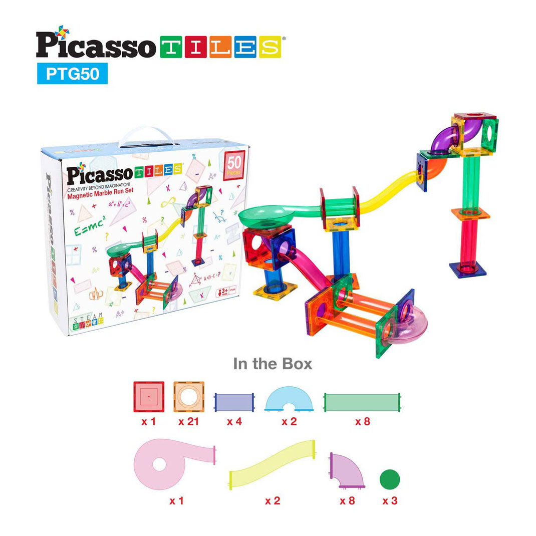 PicassoTiles Marble Run - Magnetic Building Tiles - 50pcs.