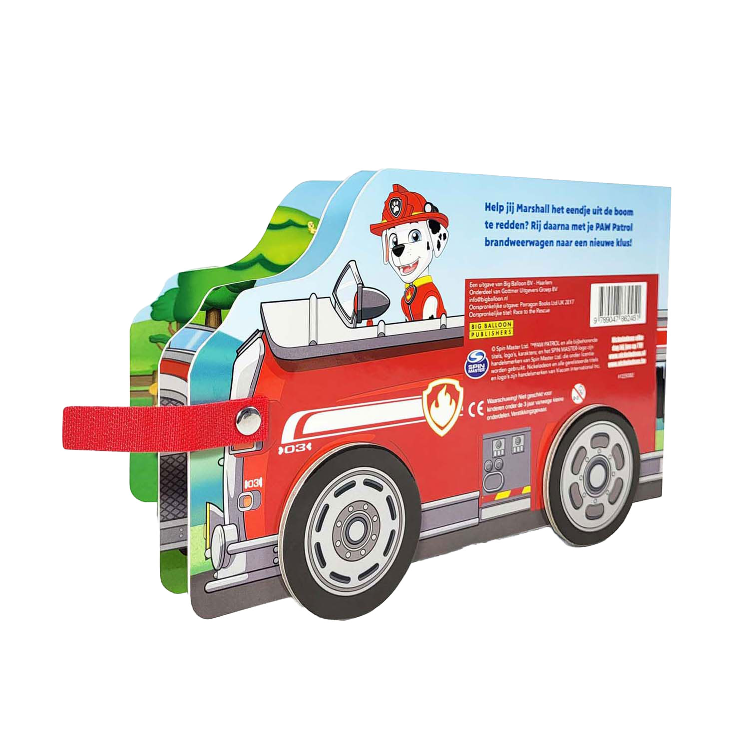 Double the fun with "A New Job for PAW Patrol," a board book on real wheels! So you can read this book and drive it around. Marshall is the tough firefighter pup from the PAW Patrol. In this book, he rescues a little duckling stuck in a tree with Farmer Yumi and afraid to come down. And he even puts out a fire! Can you help Marshall get the duckling out of the tree? Then drive your PAW Patrol fire truck to a new job!