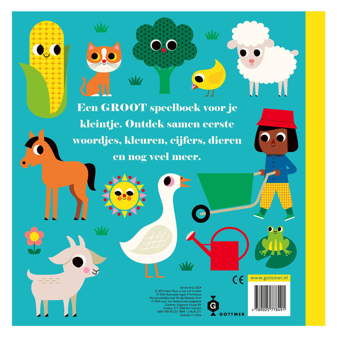 My Big Playbook Farm' is much more than a big board book: Ingela P Arrhenius has created a stylish and lively introduction to first words, colours, numbers and cute farm animals. The farm offers an excellent setting for learning to count and playing with colours and shapes, while at the same time there is a lot to discover and do. Can you guess how many sheep there are? What colour is the lettuce? And do you recognise the sounds of the farm animals? This large board book introduces first concepts in an interactive way, encouraging play. Each page contains views and a surprise is hidden under each felt flap. With 'My Big Playbook Farm' learning becomes a party for the young explorer from 18 months.