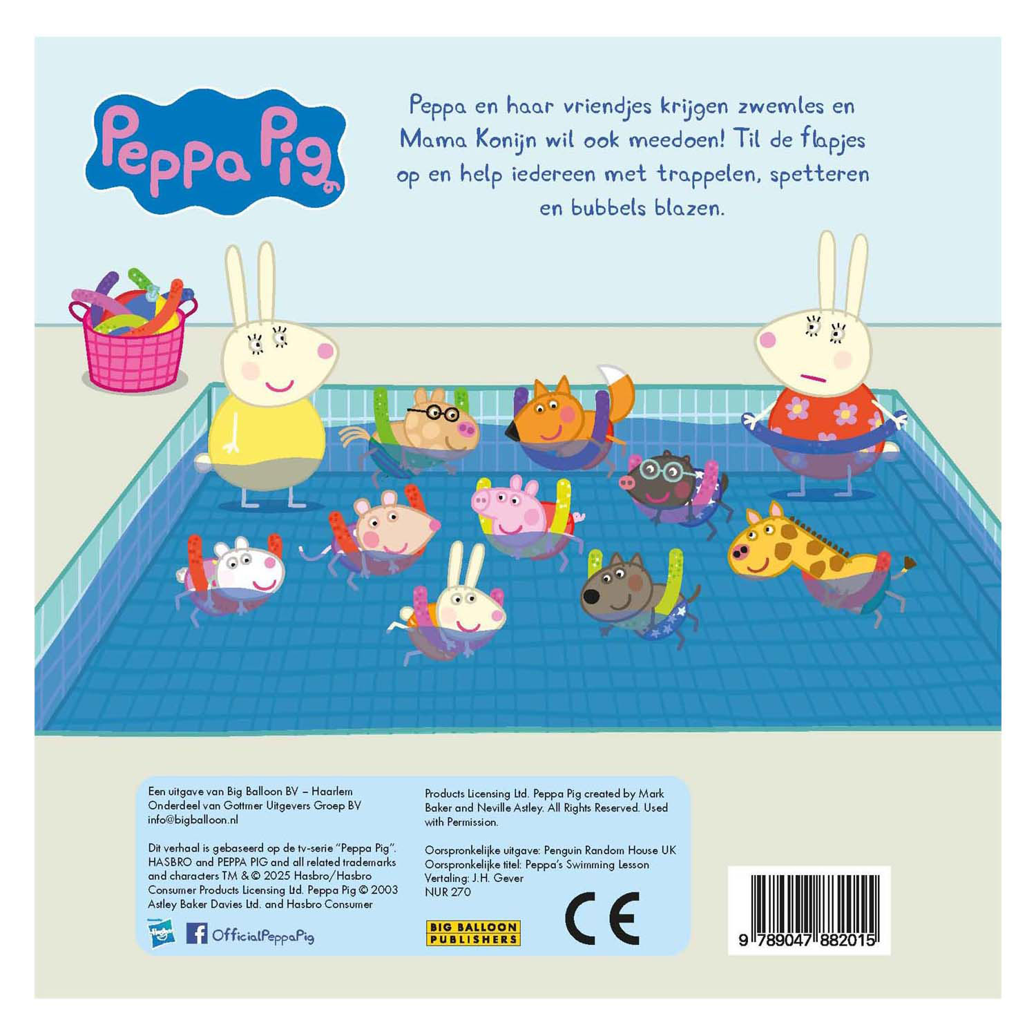 Time for action, because ' Peppa Pig' is going swimming in 'Peppa's Swimming Lesson'! Peppa and her friends are having a swimming lesson and Mama Rabbit wants to join in! Lift the flaps and help everyone kick, splash and blow bubbles. This interactive Peppa Pig picture book with flaps is bursting with cheerfulness and makes reading aloud even more fun.
