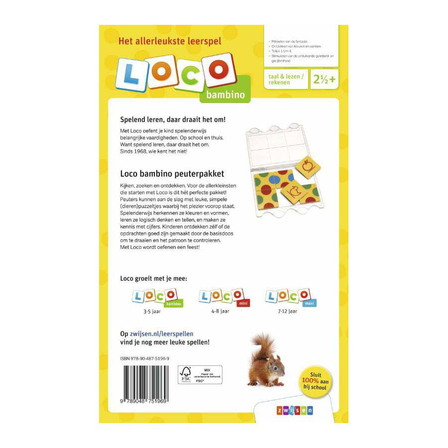 Look, search, and discover. For the very youngest starting with Loco , this is the perfect package! Toddlers get to work on fun, simple (animal) puzzles where the focus is on enjoyment. They'll playfully recognize colors and shapes, learn logical thinking and counting, and become acquainted with numbers. Children can discover for themselves whether they've completed the tasks correctly by turning the basic box over and checking the pattern. With Loco , practicing becomes fun!