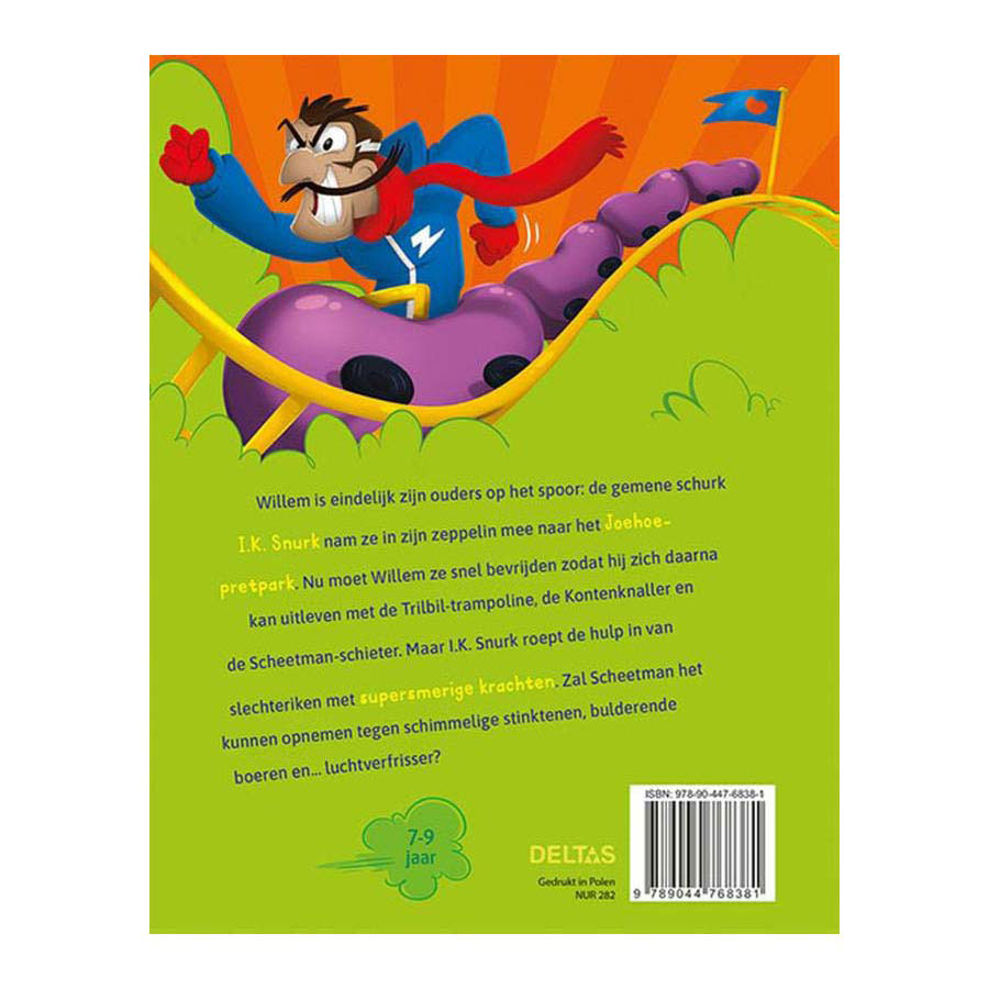 Discover a hilarious new Fartman adventure in this super funny book with lots of illustrations and little text! Everyone thinks Willem is the neatest boy in town. But little do they know that he is actually Fartman, the stinkiest superhero the world has ever seen! Willem is finally on the trail of his parents: the evil villain I.K. Snoring took them to the Yohoo Amusement Park in his zeppelin. Now Willem must quickly free them because he can't wait to have fun on the great attractions like the Trilbil trampoline, the Butt Banger and the Fartman Shooter. But I.K. Snoring calls in the help of bad guys with the dirtiest powers. Will Fartman survive against moldy, smelly toes, roaring burps and air freshener? Perfect for fans of Captain Underpants and Dog Man!