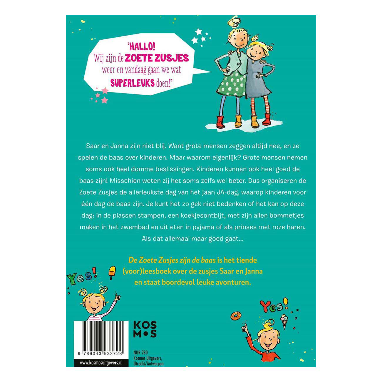 In "The Sweet Sisters Are in Charge," written by Hanneke de Zoete, the Sweet Sisters, Saar and Janna, are going to protest. Because grown-ups always say no, and they boss children around. But why? Children can be bosses too! So the Sweet Sisters organize the best day of the year: Yes Day, where children are in charge for one day. They decide everything. And so, only fun things happen on Yes Day: from a cookie breakfast to splashing in puddles, dyeing your hair pink, and eating out in your pajamas. A wonderful book to read aloud to children ages 4 and up, or for children ages 7 and up who want to read independently. This (read-aloud) book is beautifully bound, cheerfully illustrated by Iris Boter, and features glitter on the cover. That makes it a perfect gift for any child. For a birthday, graduation, moving house, Sinterklaas, Christmas, or just because.