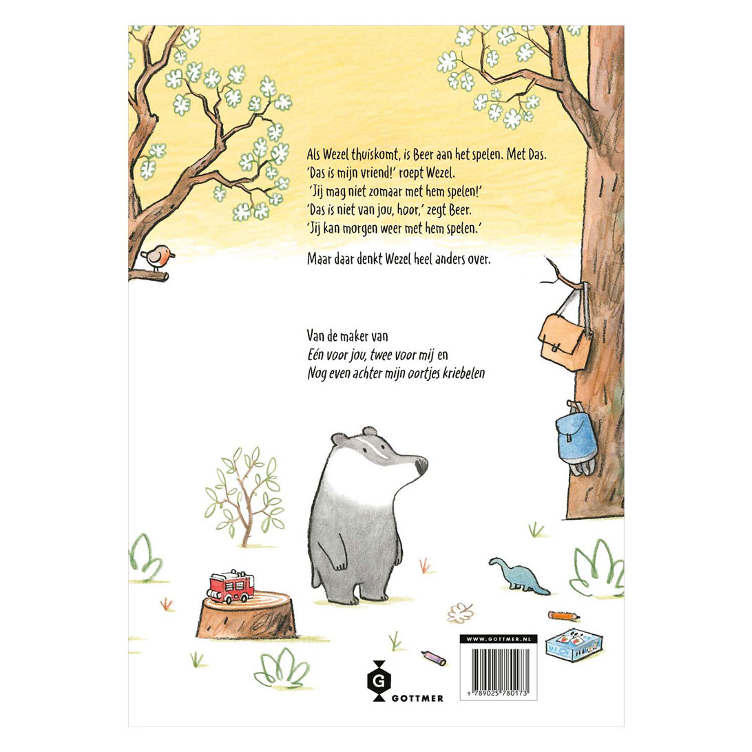 When Weasel gets home, he can't believe his eyes: Bear and Badger are playing together. Weasel feels left out because Badger is his friend. Despite Badger's attempts to defuse the situation and suggest they just play together, Bear and Weasel can't agree, even on simple games like mommy and daddy, soccer, Memory , or hide-and-seek. "You always want to be the boss!" says Weasel. "You're no fun to play with!" says Bear. Then Badger has to go home...