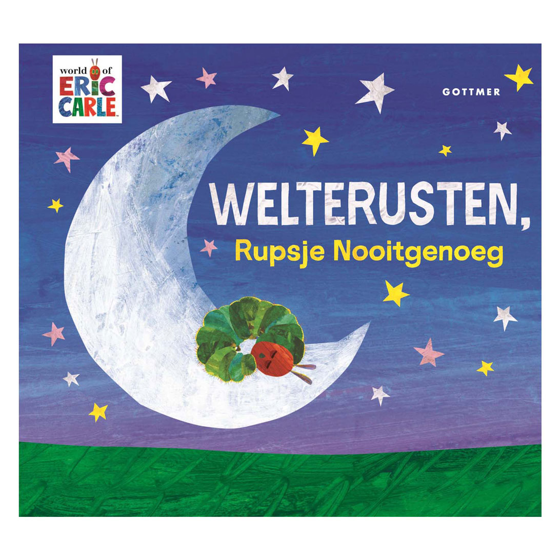 Goodnight, The Rupsje Nooitgenoeg is a fully-fledged new picture book story to read before bedtime. The Very Hungry Caterpillar also has to go to sleep, but first he takes the readers through a field of flowers, a moonlit night and a silent starry sky. During his adventure he meets all kinds of familiar and trusted night animals from the world of Eric Carle, such as an owl, a firefly and a wolf. And then he can finally sleep soundly. This beautiful new bedtime story provides relaxation and assures children and parents of a good night's sleep.