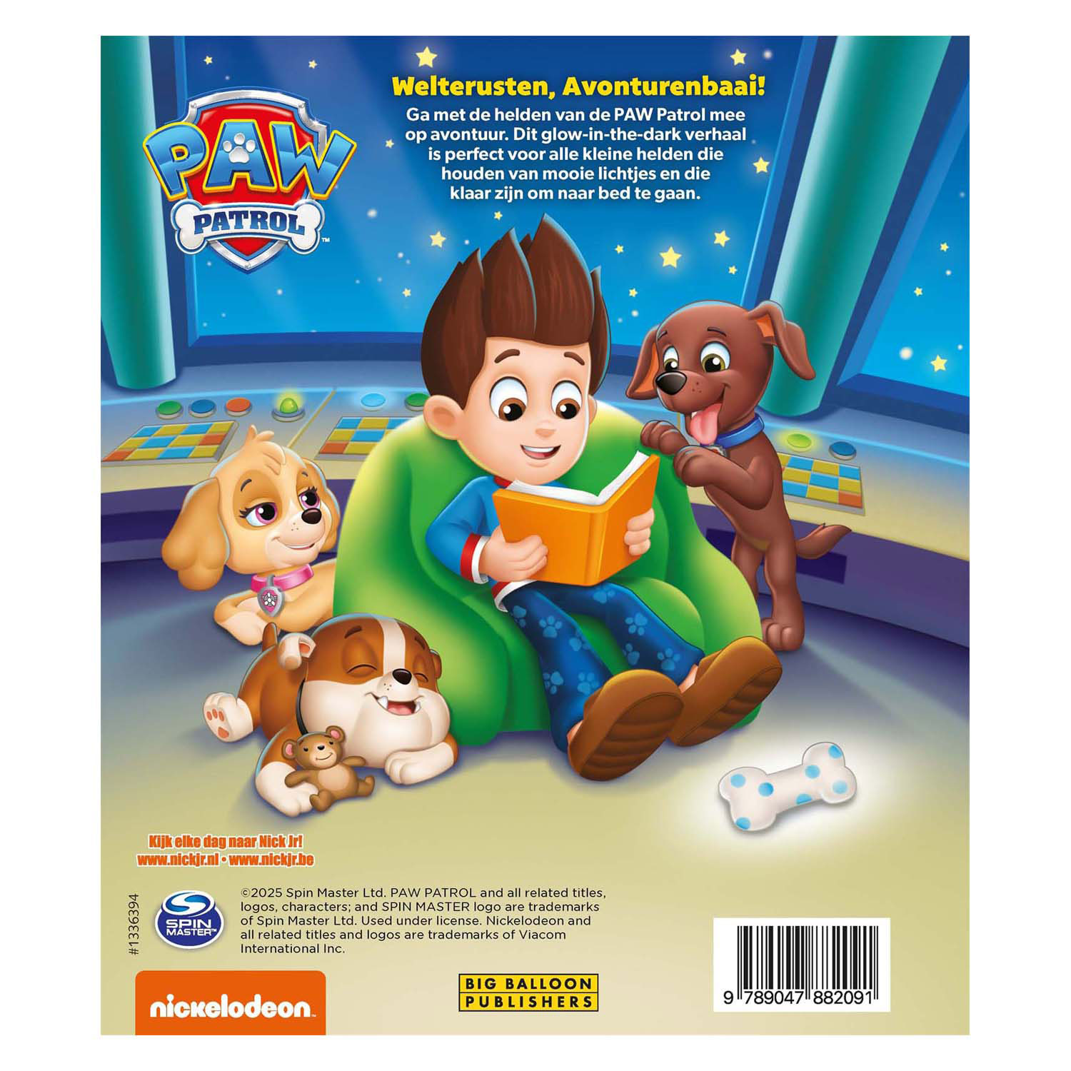 The glow-in-the-dark PAW Patrol board book 'Goodnight, Adventure Bay!' is the ideal bedtime story for every PAW Patrol fan. It's getting dark in Adventure Bay and the residents are getting ready for bed together with the PAW Patrol team. Time to crawl under the covers, look at the stars and read stories. 'Goodnight, Adventure Bay' contains real glow-in-the-dark stars! This is a fun children's book to read to children aged 4 and up.