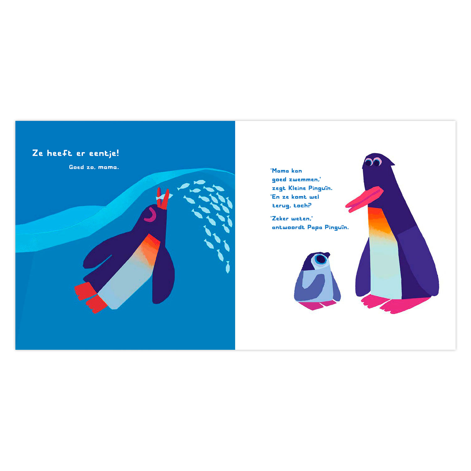 In Chris Haughton's new picture book 'Good job, mom!' we travel to the South Pole, where a penguin family goes in search of a tasty fish. Daddy Penguin and Little Penguin watch as mom dives into the sea, hunting for food. She swims, catches, jumps and climbs, all to get a tasty fish for Little Penguin. For a moment, mom seems to have a minor setback in the form of a large, dangerous elephant seal, but Mommy Penguin doesn't let herself be deterred! Chris Haughton's idiosyncratic style and dry humor once again burst from the pages. His picture book 'Mama kwijt' was Picture Book of the Year 2012 and 'Komt goed, kleine krab' has also become a true classic. This book by Chris Haughton is once again a joy to read and look at. With pictures full of delightfully funny waddling, flipping and sliding penguins against a background of a surprising palette of colors.