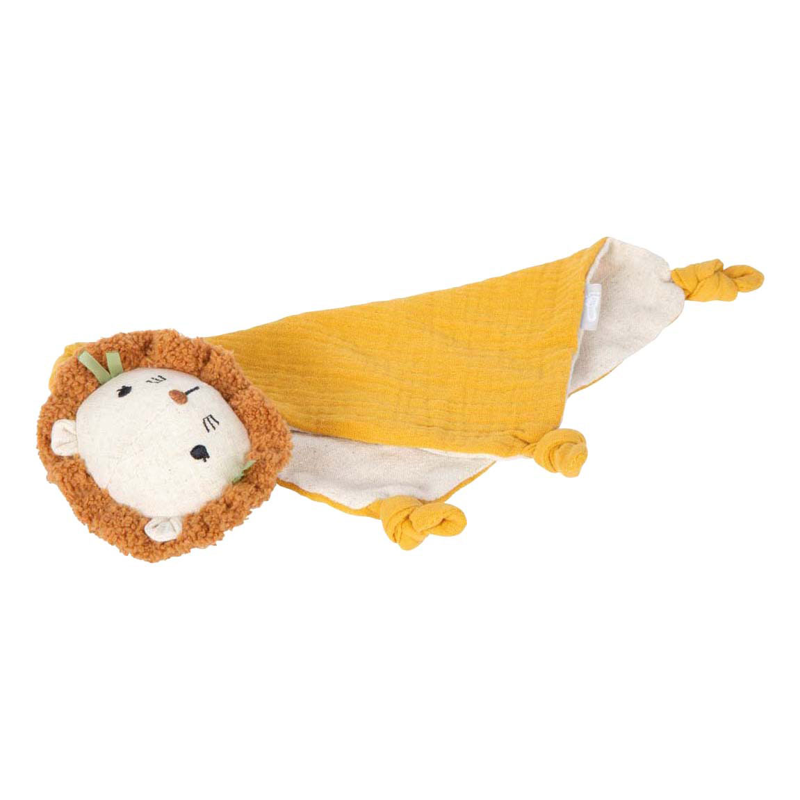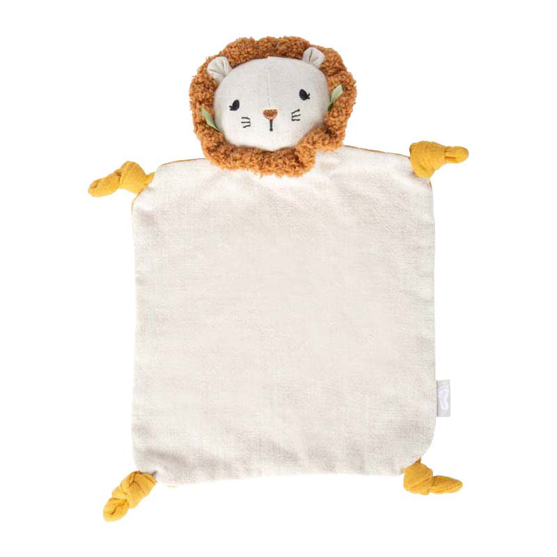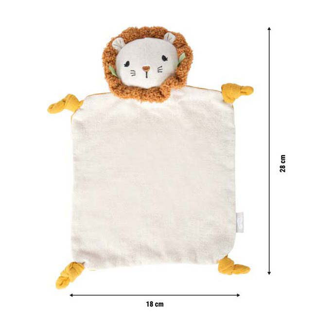 A loyal friend from the very first moment! This adorable cuddle blanket with a lion print is the perfect cuddly companion for little ones. Soft, cozy, and child-friendly, it offers a sense of security, invites your little one to feel and explore, and its convenient size makes it perfect for small baby hands. The muslin fabric gently stimulates the senses. It makes a wonderful gift for a birth or christening! Small, soft, soothing: the 'Little Lion' cuddle blanket is more than just a cuddle blanket: it's a comfort blanket, sleep aid, and sensory toy all in one. The soft surface, adorable lion print, and soft lining make it an indispensable everyday companion for babies and toddlers. The different fabric textures, especially the muslin, playfully stimulate the sense of touch: babies feel, touch, discover, and learn with every physical contact. Features • Small Foot - Fabric Cuddle Blanket Little Lion • For babies from 0 years • Dimensions: approx. 28 x 18 cm