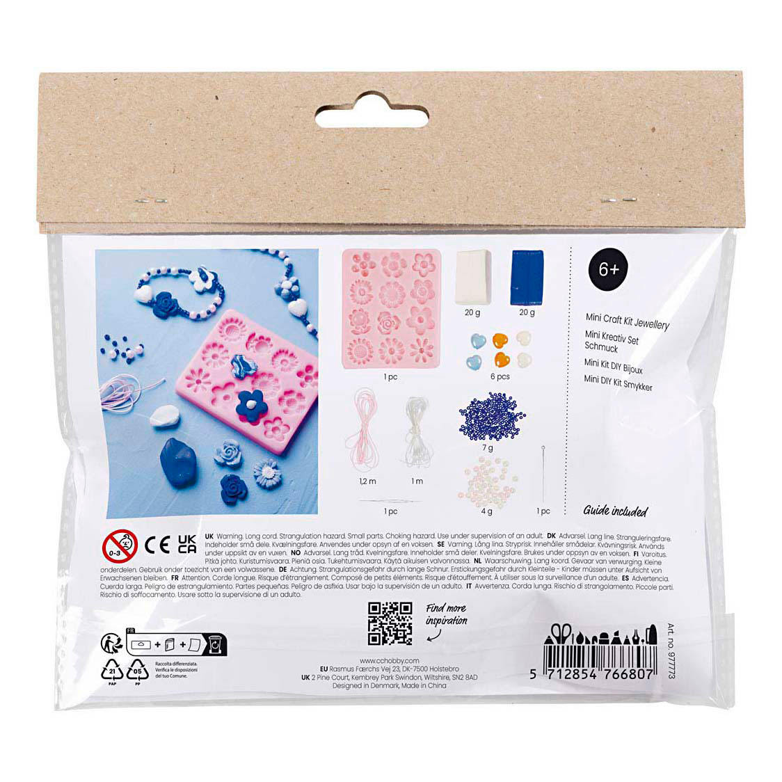 Do your children dream of designing jewelry? Then try our Creativity in a Box to make their dream a reality. With this set, you can create the most beautiful flower jewelry together. Use the silicone molds to shape the flower beads from blue and white jewelry clay. If you like, you can also experiment with the look. Try a beautiful marbled effect or combine the colors for a lovely light blue hue. Once the beads have hardened in the oven, children can make bracelets and necklaces in any style they like.