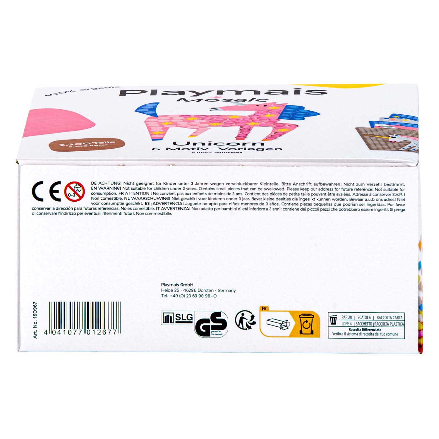 The Playmais Mosaic craft box contains over 2,300 colorful Playmais pieces and 6 stencils. Dive into the fantastic world of unicorns, full of color and dreams, and design it with your own imagination.