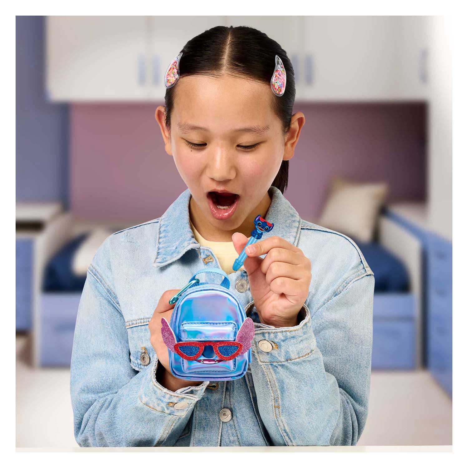 The Real Littles Backpack Stitch Edition is the perfect mini backpack to take your favorite Disney character everywhere! This adorable and colorful backpack is packed with fun stationery, all in Stitch's cheerful style, complete with his signature ears and iconic colors. Open the backpack and discover a mini pen, a ruler, writing paper, a notebook, stickers, and much more. Everything you need for drawing, writing, or crafting, but in a super compact size!