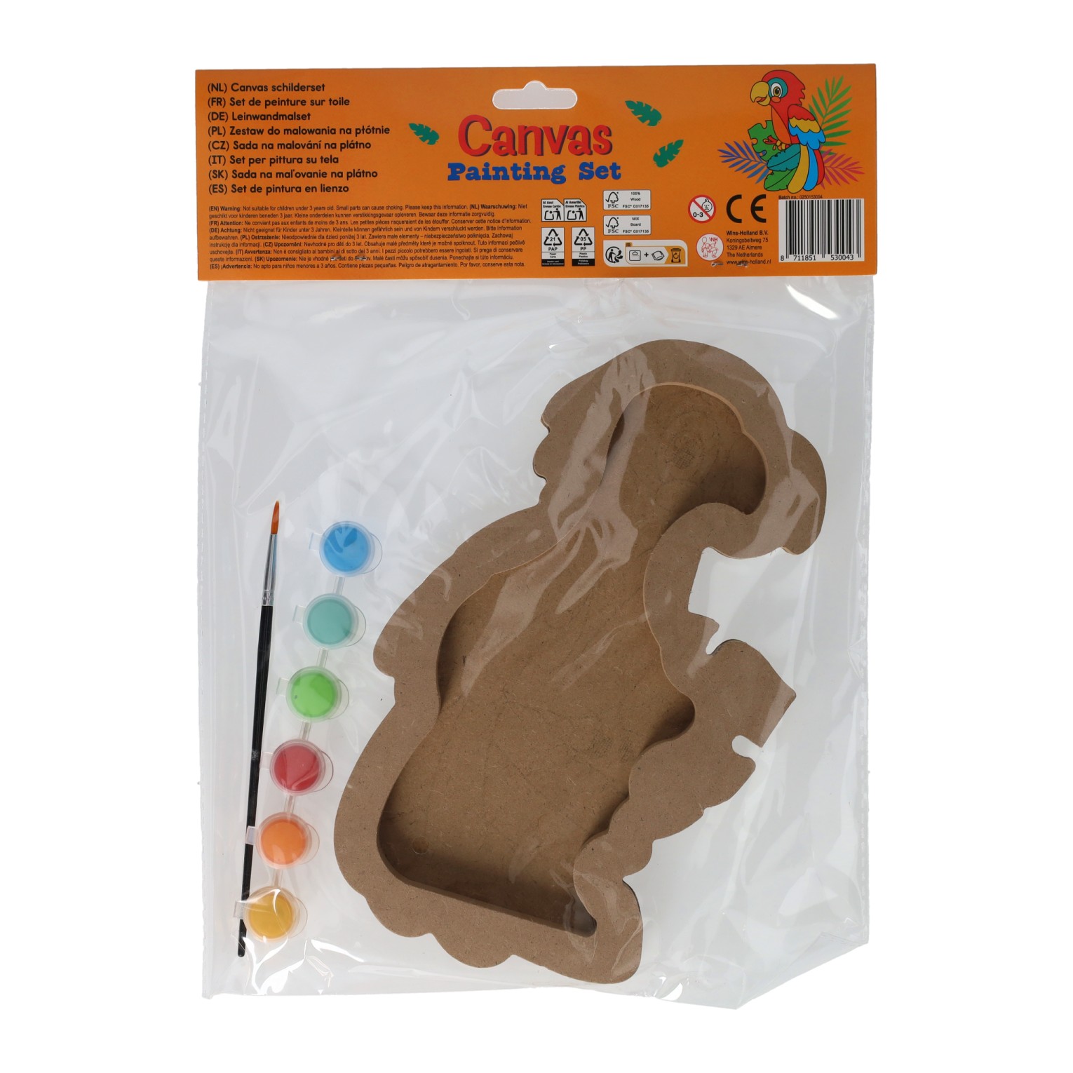 Canvas Painting - Parrot - incl Brush and 6 colors of paint