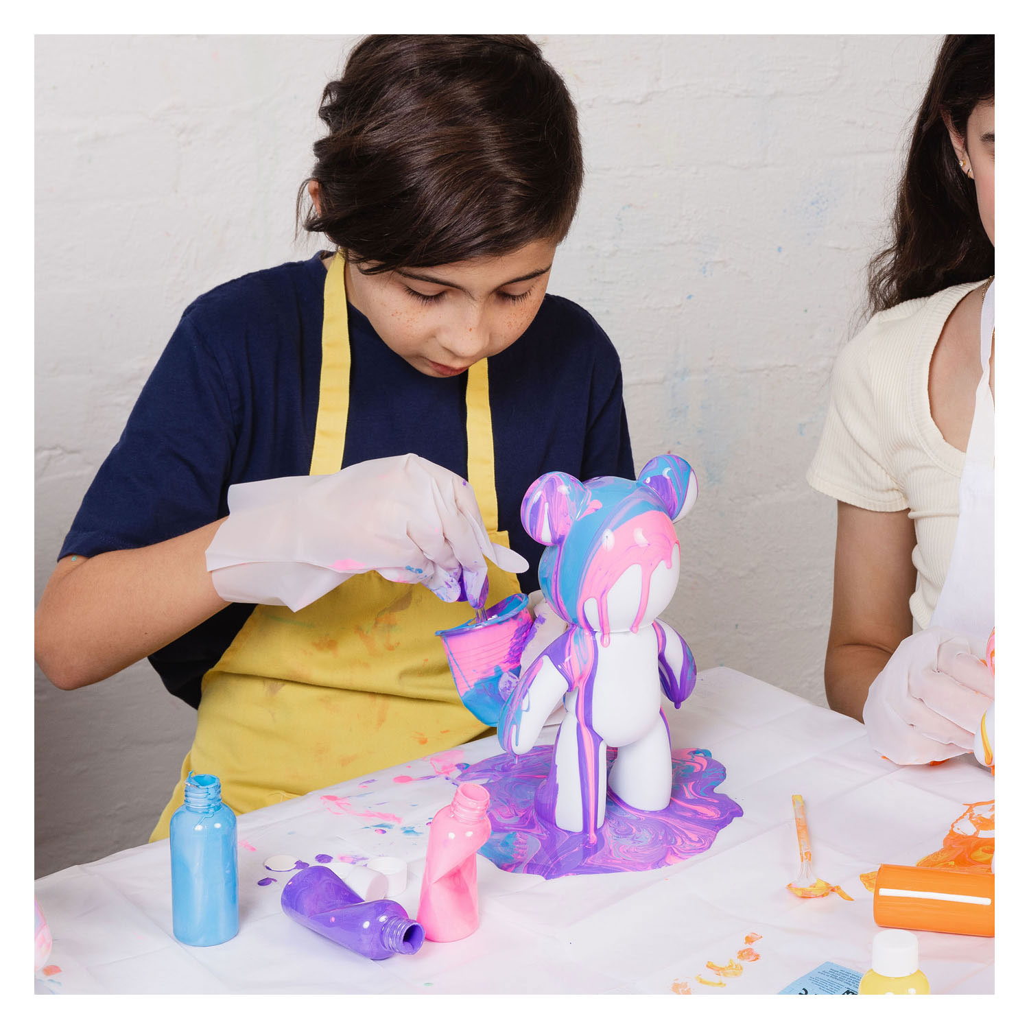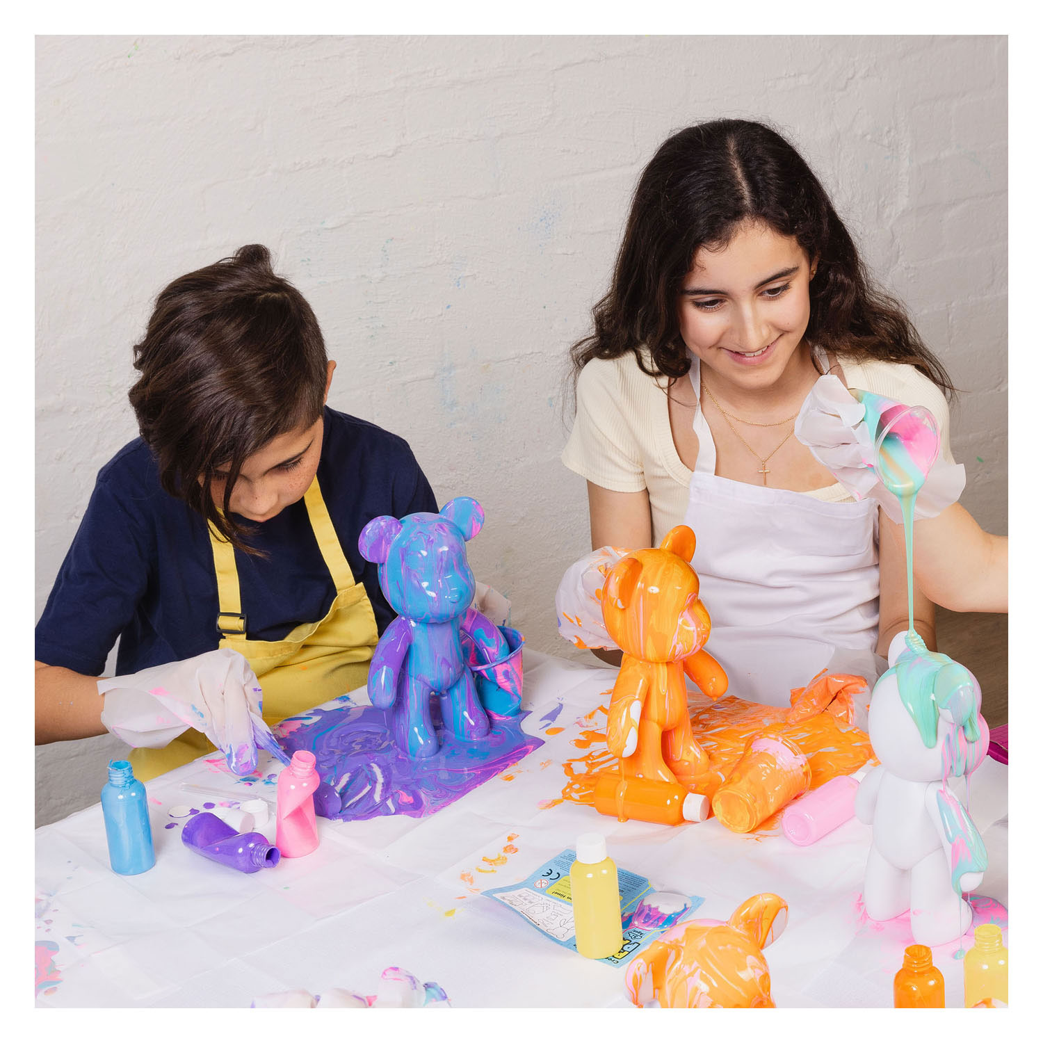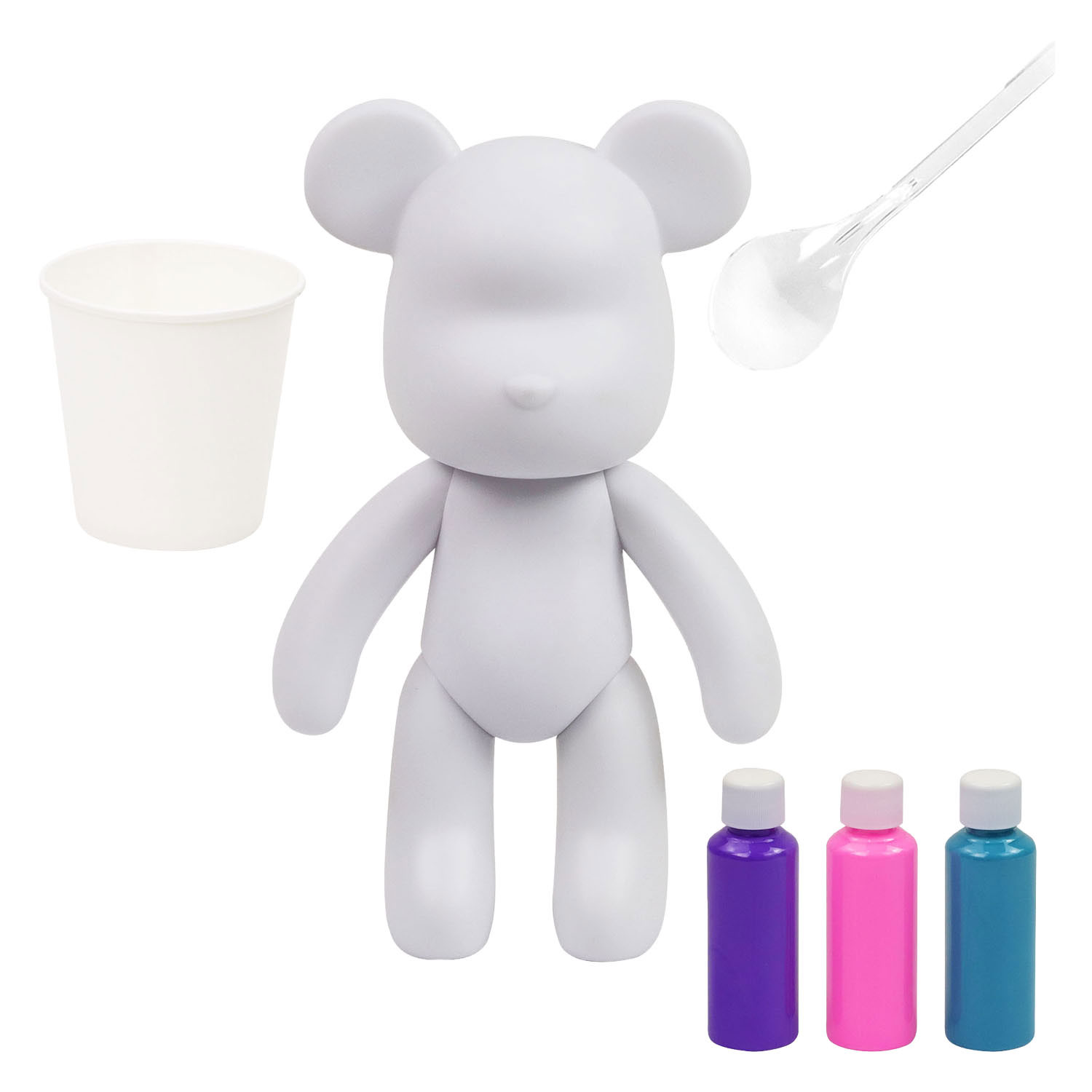Create a cheerful and unique work of art with the Pour PalZ Large Paint Bear – Berry Blast! This cute, large white paint bear is poseable and your perfect base for a creative pour-paint adventure. Mix the three included acrylic paint colors (purple, pink, and blue) in the cup, pour the paint over the bear, and use the ladle to add extra color. Tilt the bear and watch the colors blend beautifully into a playful and colorful pattern. Thanks to its large size, there is plenty of room to experiment with paint. The Pour PalZ Large Paint Bear is approximately 25 cm tall and perfect to display as your own artwork. Whether you are crafting for yourself or making an original gift, this paint bear is guaranteed to provide hours of creative fun. Age indication: 5+ years.