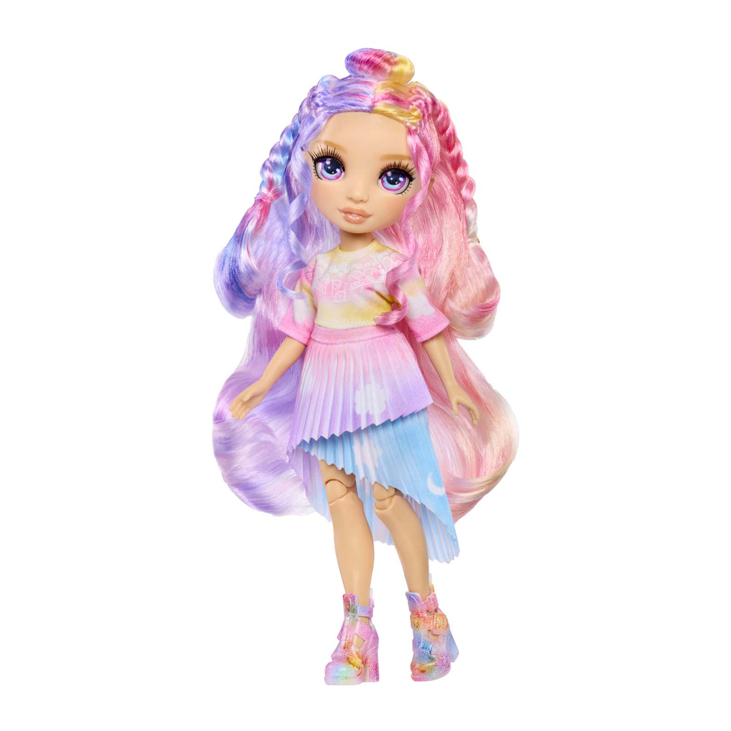 Collect them all—three dolls with their own fashion, hairstyles, and eye colors (green, gray, and purple). The creative possibilities are endless.