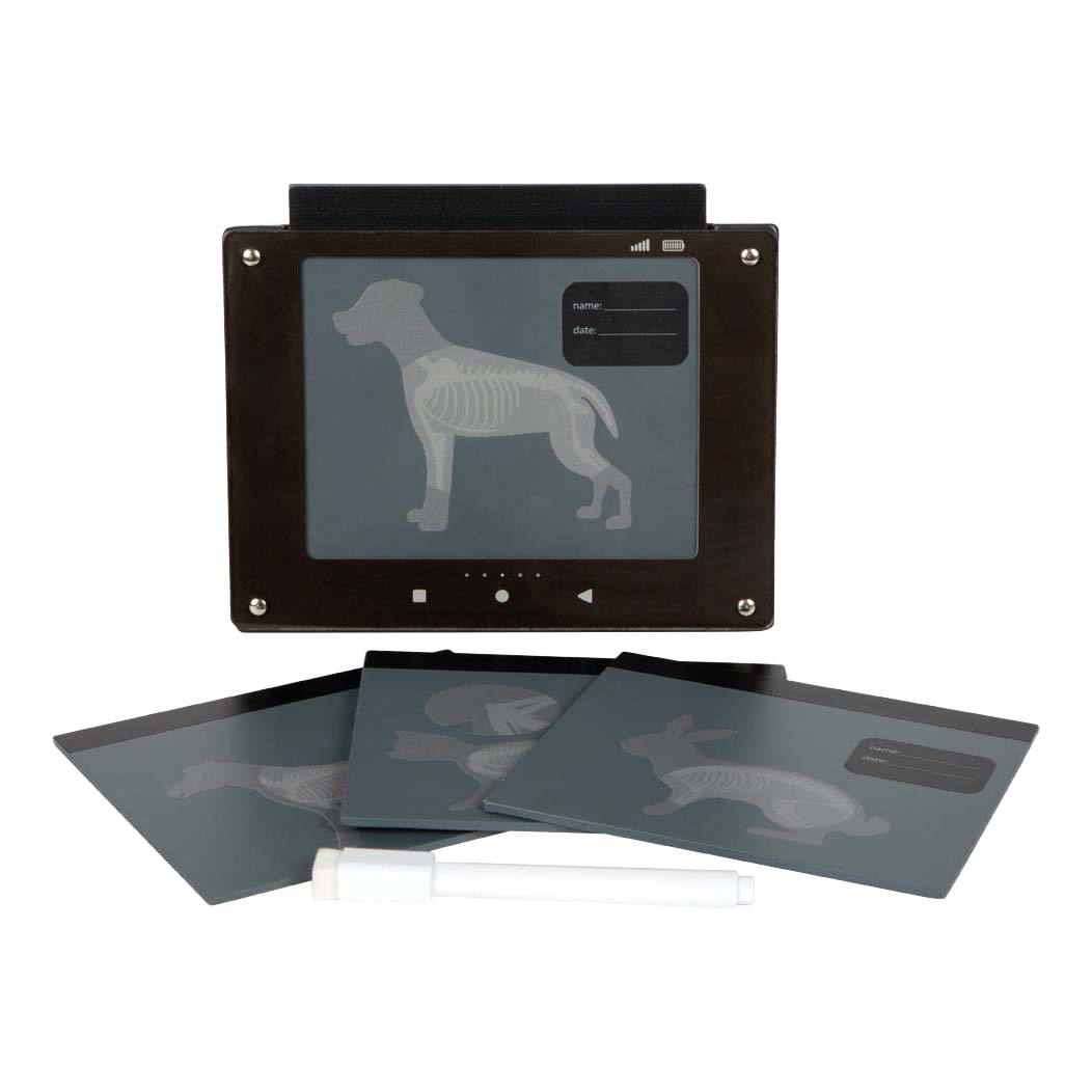 Small rabbit, big responsibility! With this lovingly designed vet bag with a plush rabbit, children can step into the shoes of a veterinarian and care for their patients. From taking temperatures to taking x-rays and treating fleas, this comprehensive playset makes role-playing around vet visits, animal care, and healthcare not only realistic but also educational and heartwarming! The extensive range of accessories offers everything young vets need: a stethoscope, thermometer, otoscope, syringe, bandage, protective collar, and even a tablet for viewing x-rays, including four x-rays (dog, cat, rabbit, horse). A check-up form is also printed on the back of the x-ray plates. Tick remover, tweezers, medication, and a vaccination card complete the set, along with an appointment card and a medical record form, while the A5 poster featuring various dog breeds can be displayed in the "veterinary office" in style. Extremely practical: the bag not only serves as a transport box for the rabbit, but also as a handy doctor's bag that keeps everything neatly organized and offers mobility.
