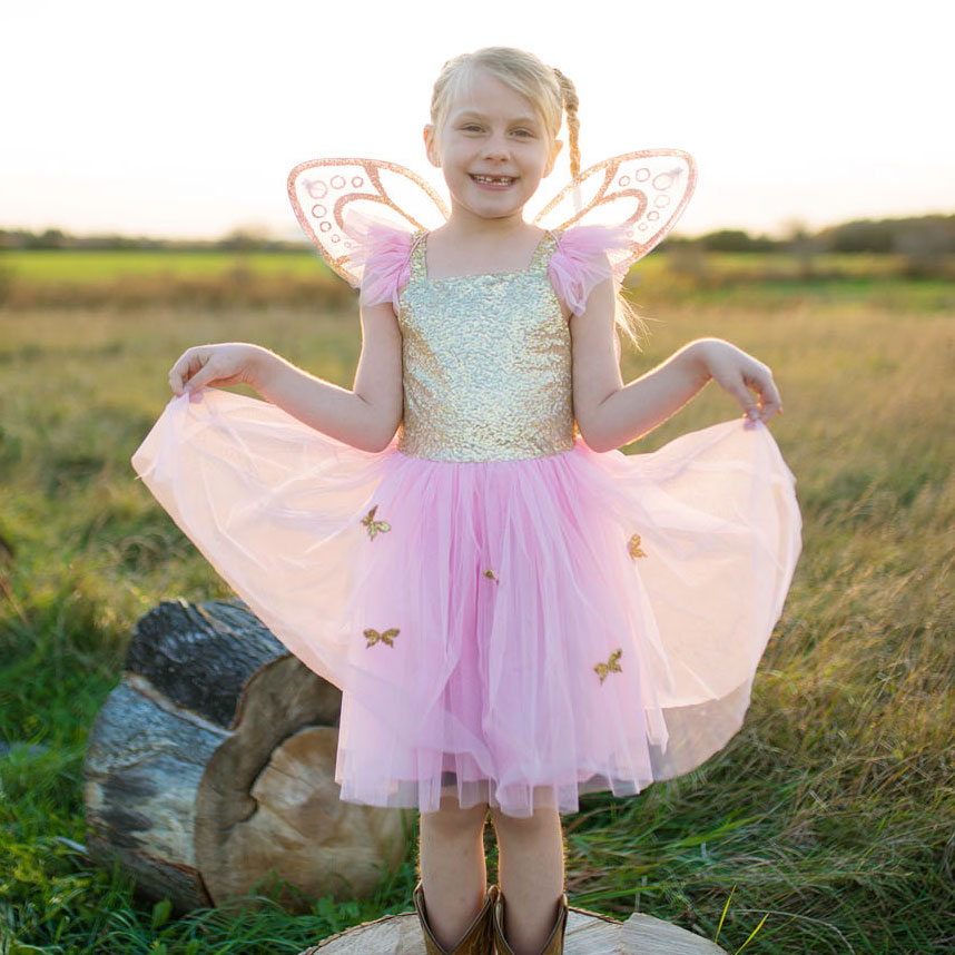 Butterfly Dress-up Dress Gold with Wings, 5-7 years