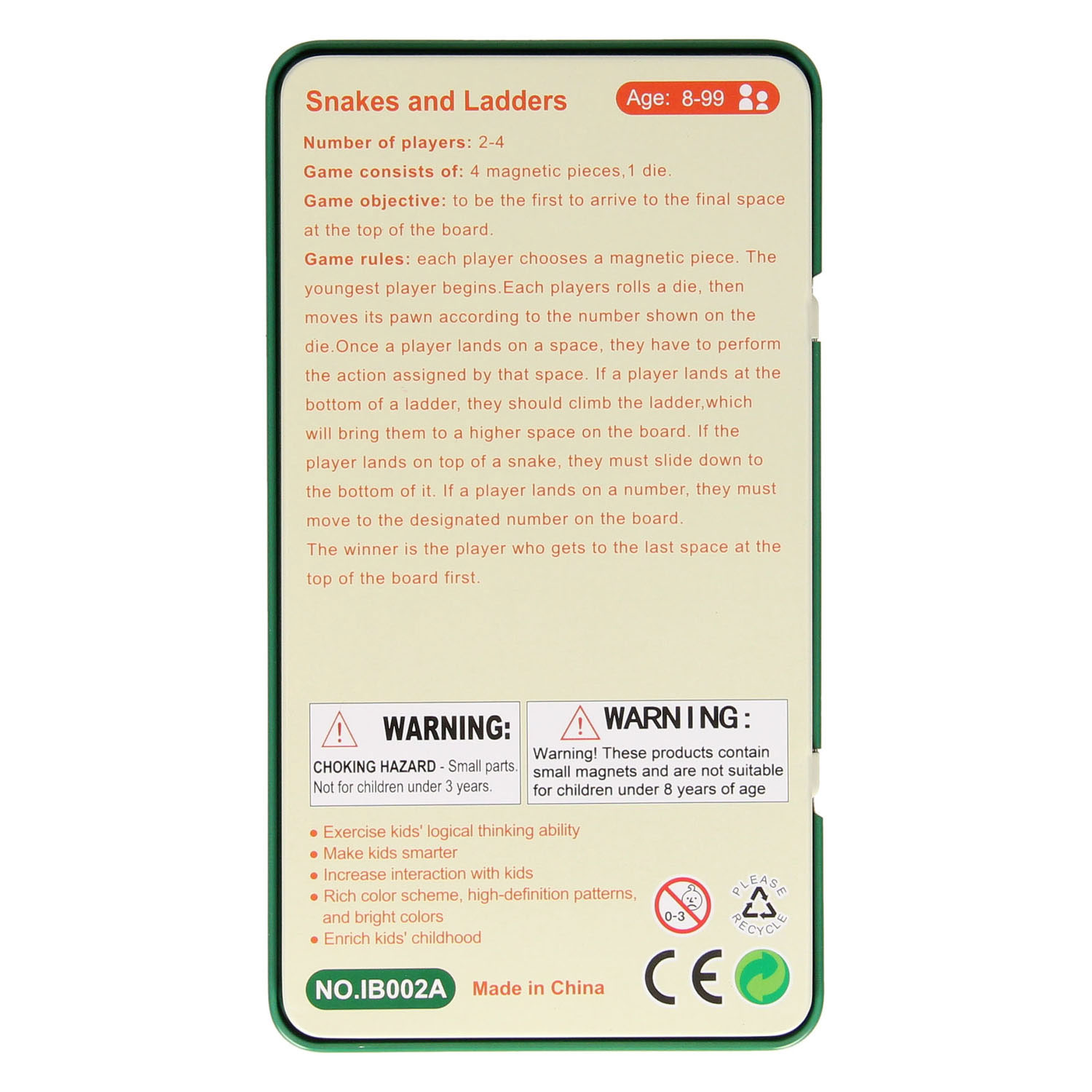 Snake and Ladder Game Magnetic in Tin