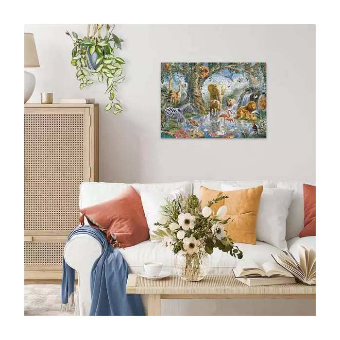 Escape from reality and step into the world of Ravensburger puzzles. This Ravensburger puzzle of 1000 pieces is suitable for both beginners and experienced puzzlers. And because our beloved puzzles have a standard size, you can frame and hang the result. Thanks to the handmade dies, the shape variation of the pieces is endless. Young and old will enjoy this Adventures in the Jungle puzzle with 1000 pieces.