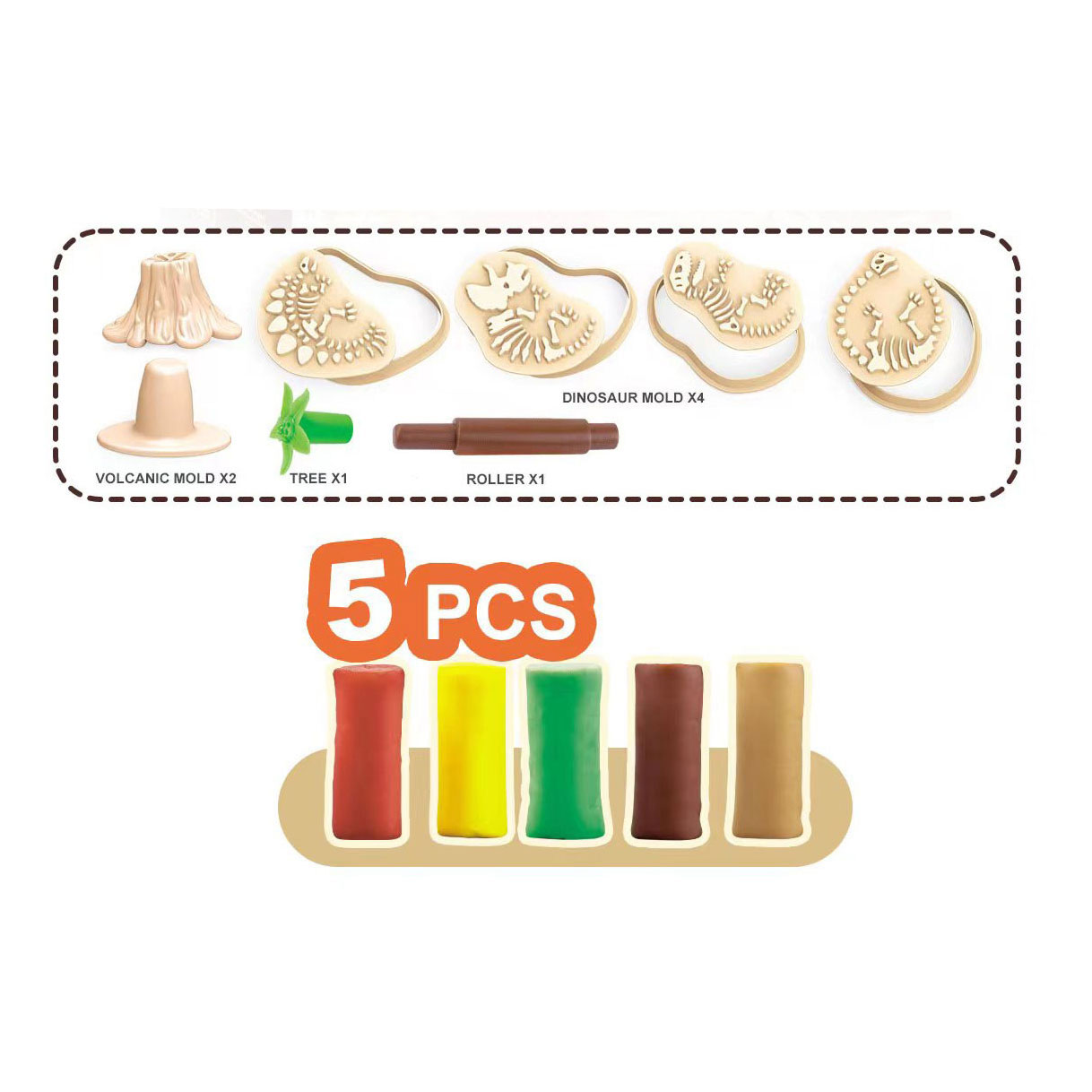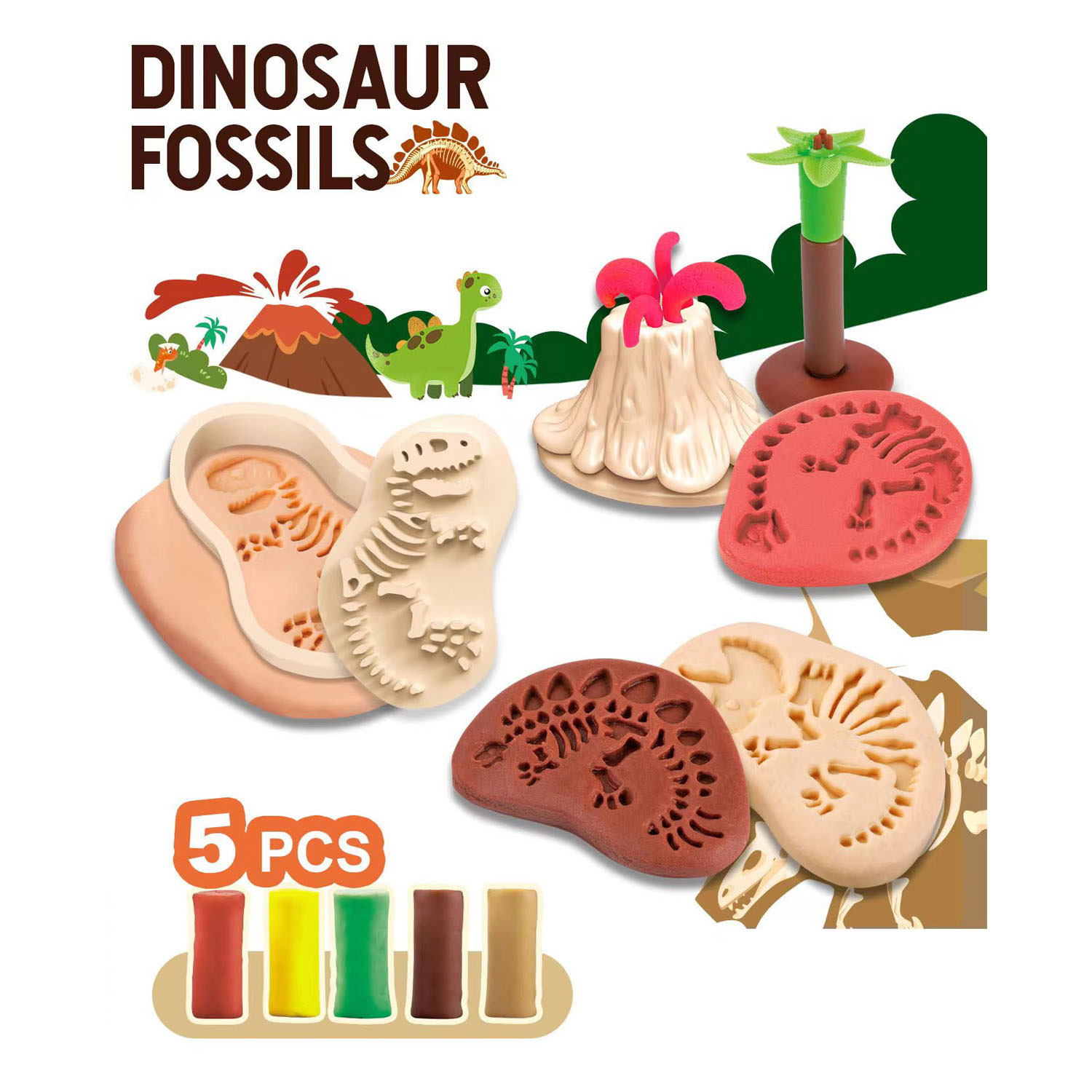 Dinosaur Fossil Clay Set - 5 Colors Clay
