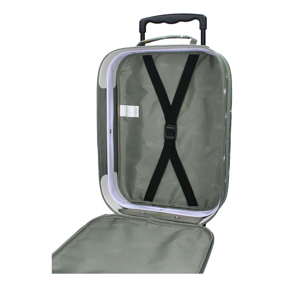 Traveling becomes even more fun with this Kidzroom trolley from the "Small Talk" collection. From now on, your child can bring their own vacation gear, and the suitcase is easily recognizable by its cool print. The large main compartment offers plenty of room for swimwear, toys, and sunscreen. But it also fits a few regular clothes and shoes. The green trolley features an all-over dinosaur print. The double zipper closure provides easy access to essentials. The handle is retractable, and the two wheels make the trolley easy to pull. The suitcase also has a zippered front pocket for smaller items like underwear and toiletries.