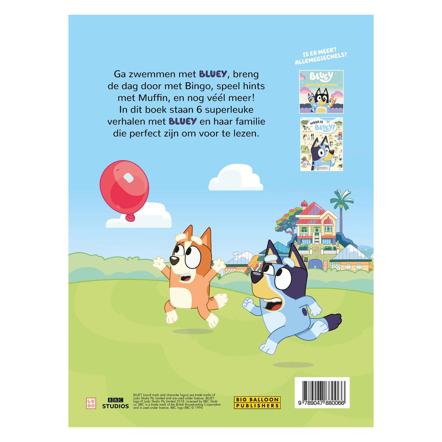 Allemegiechels! In het nieuwe prentenboek 'Bluey Dubbeldik Verhalenboek' staan zes superleuke verhalen over Bluey en haar familie die je heerlijk kunt voorlezen. Ga zwemmen met Bluey, breng de dag door met Bingo, speel hints met Muffin en nog véél meer!