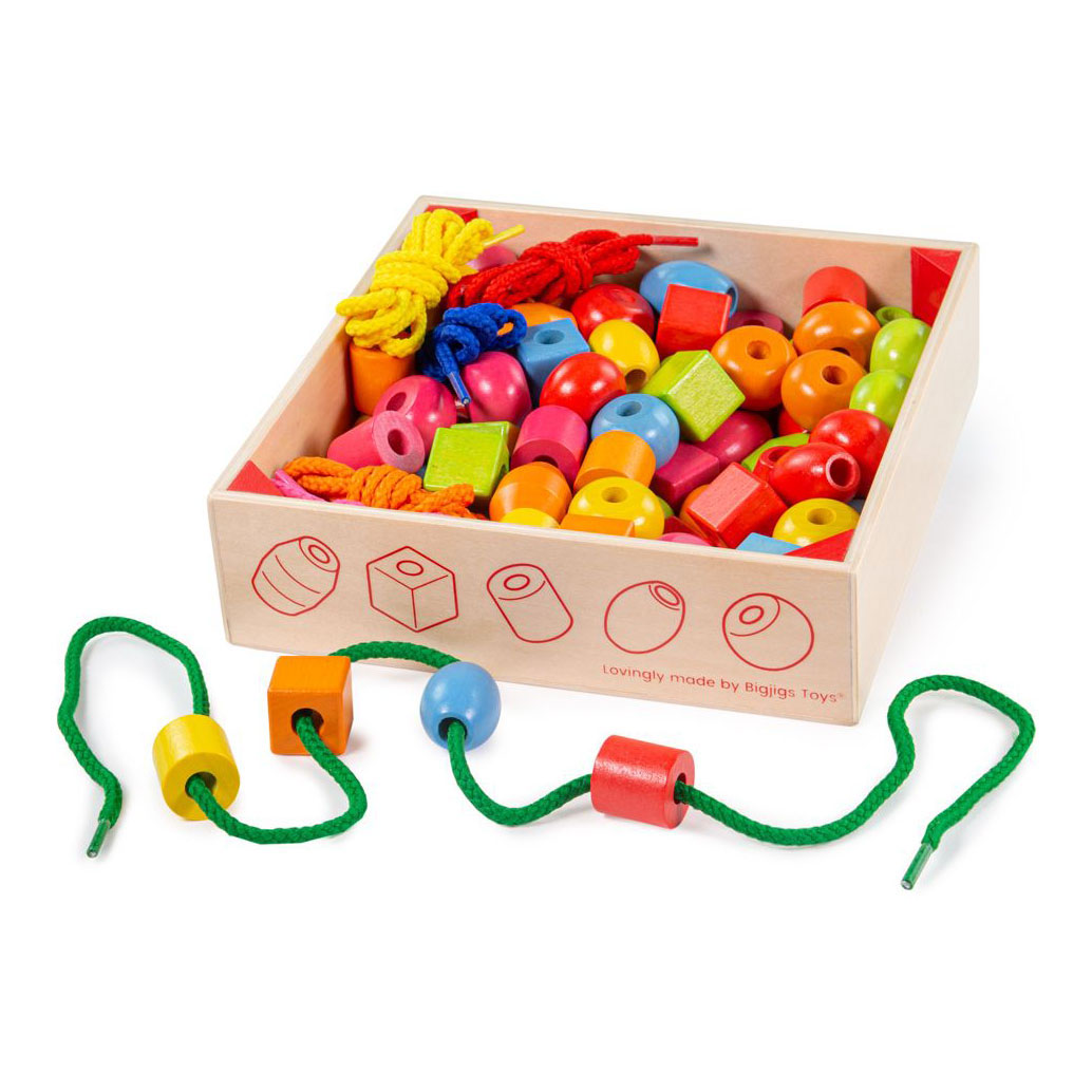 Bigjigs Houten Gekleurde Kralen, 95dlg.