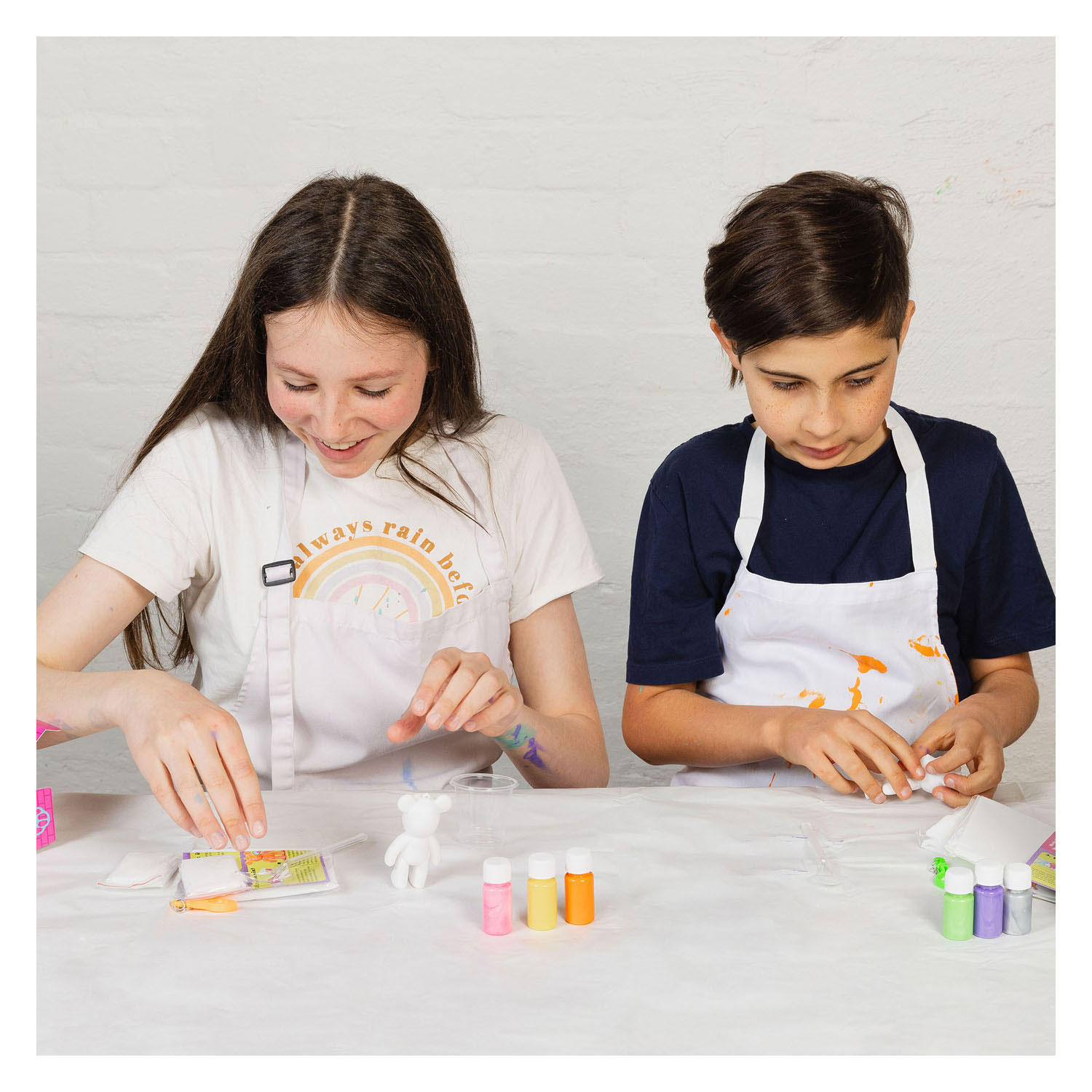 Maak een vrolijk en uniek kunstwerk met de Pour PalZ Mini Paint Bear Sleutelhanger! Deze schattige witte mini-beer met sleutelhanger is jouw perfecte basis voor een creatief paint-pour avontuur. Meng de drie meegeleverde acrylverfkleuren, giet ze over de beer en zie hoe de kleuren prachtig in elkaar overlopen tot een speels en kleurrijk patroon.