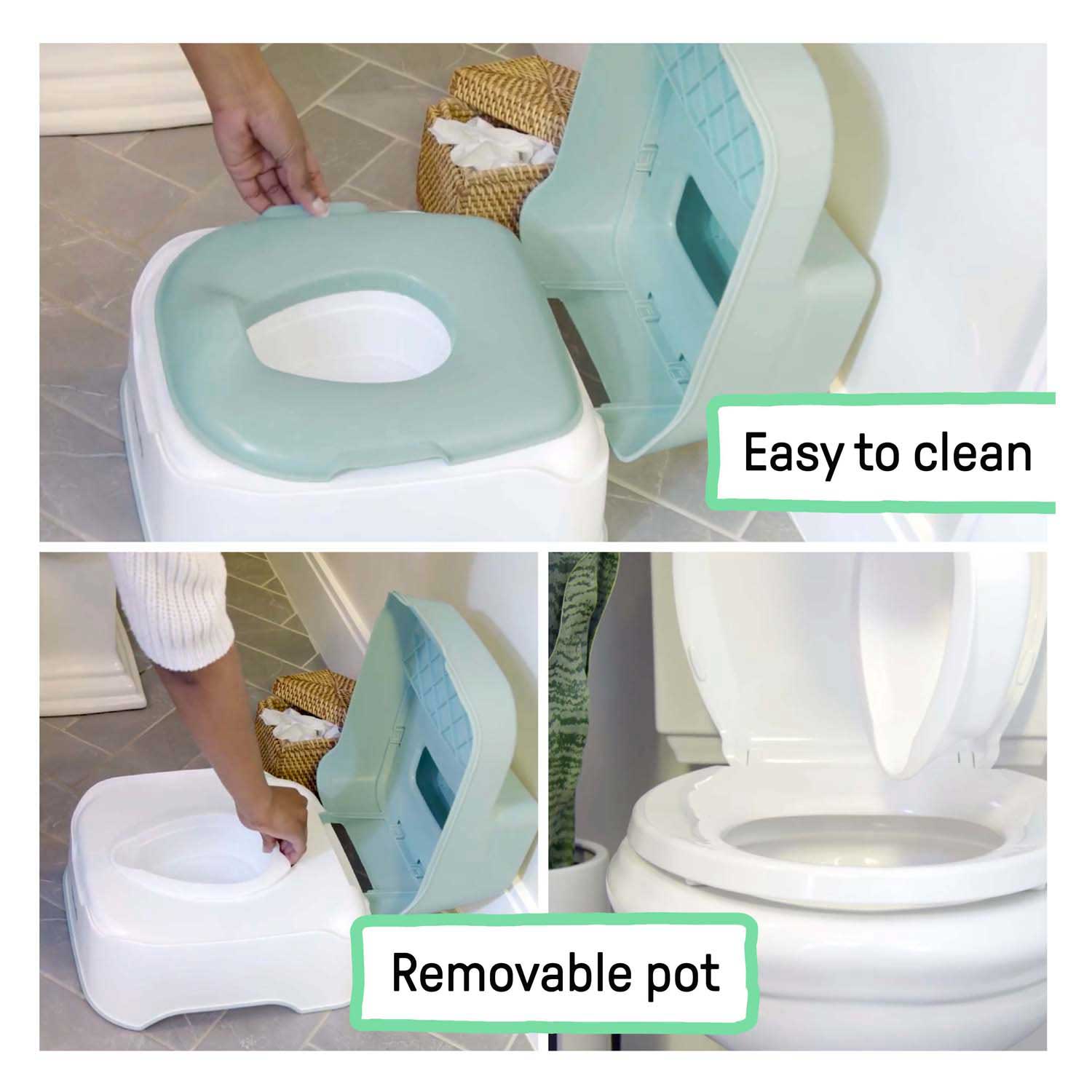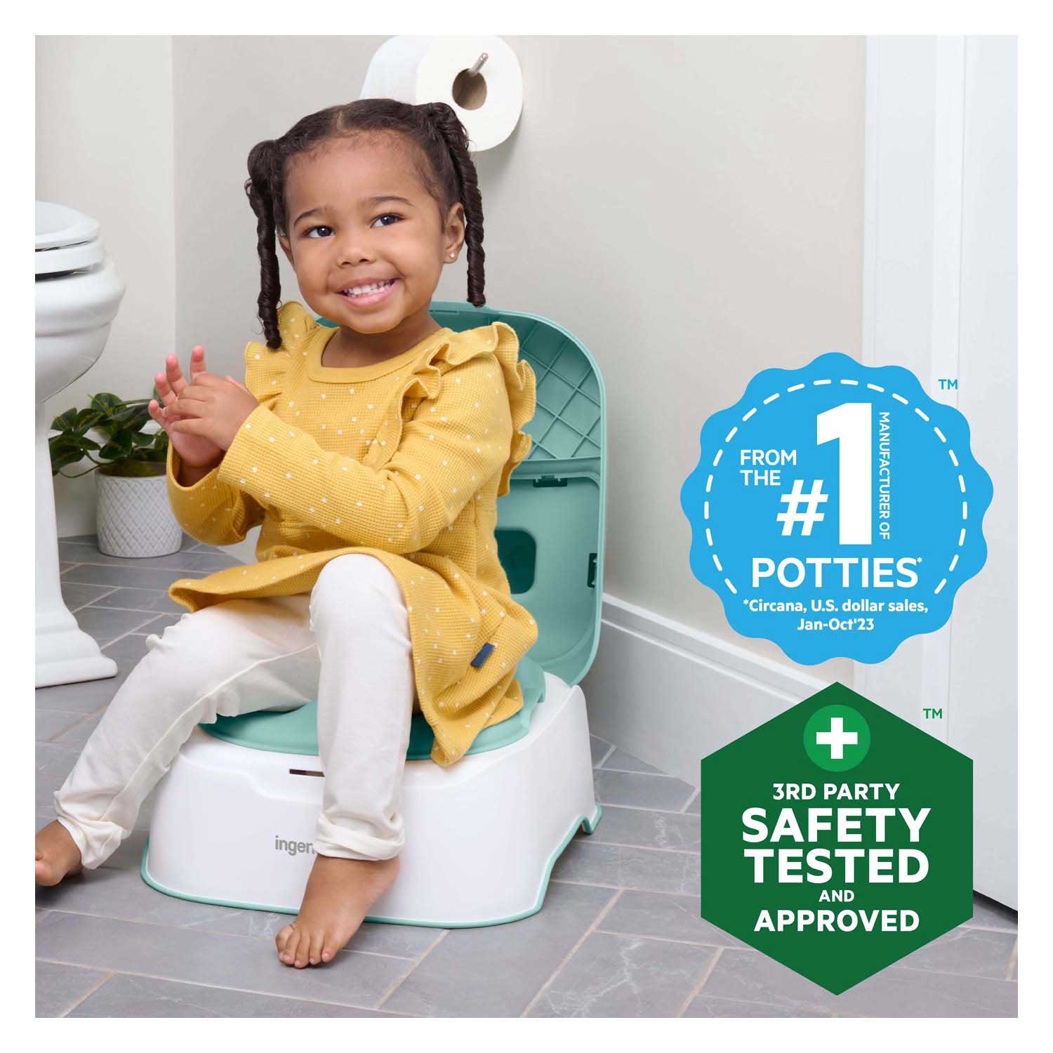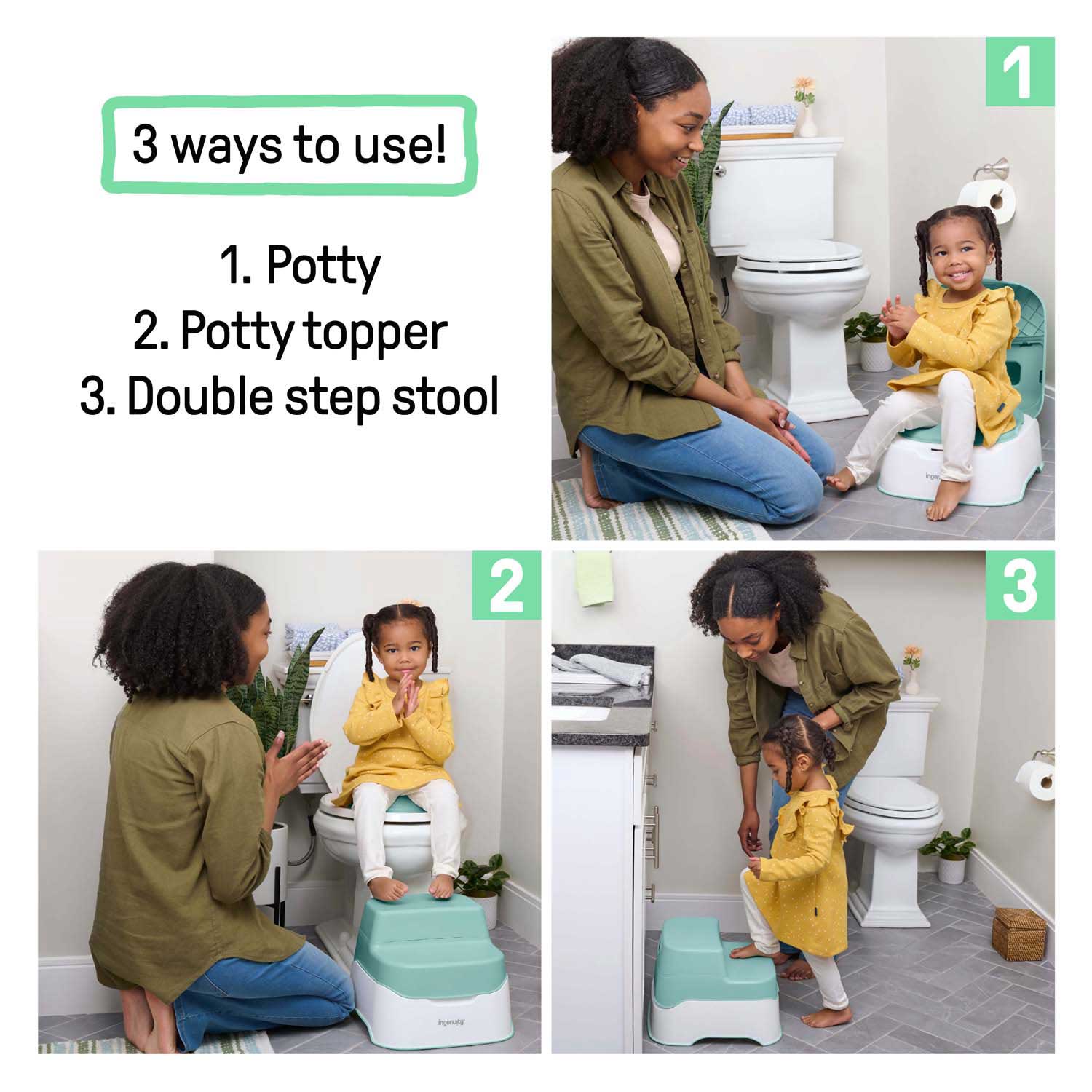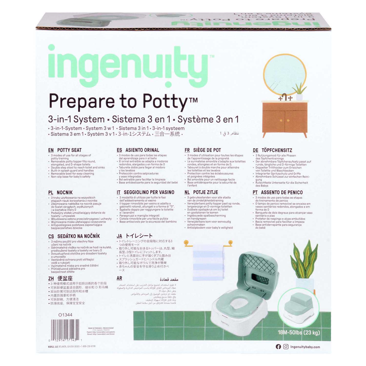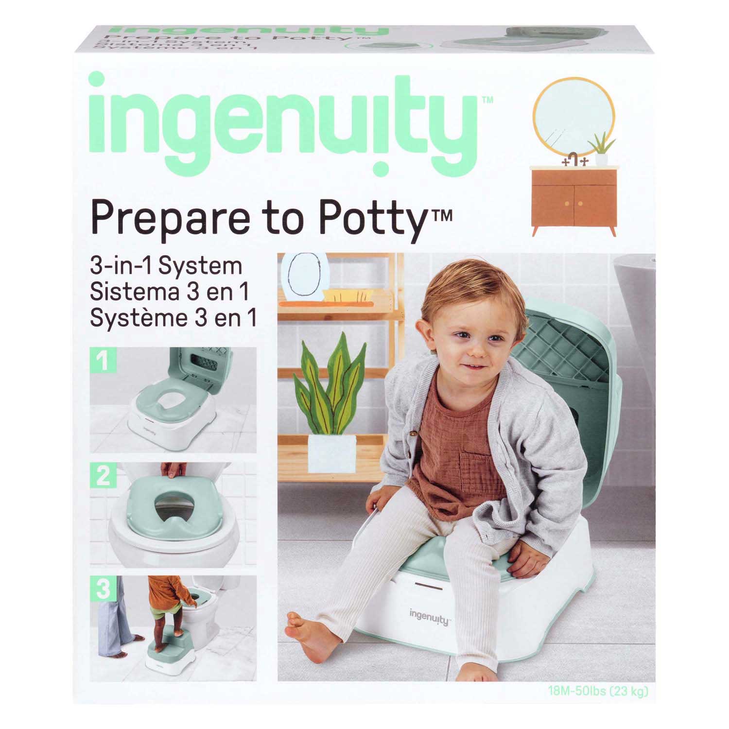 Maak de zindelijkheidstraining eenvoudiger met het Prepare to Potty 3-in-1 System van Ingenuity! Dit slimme systeem groeit mee met je kind en biedt drie functies in één: een kinderpotje, een toiletverkleiner en een dubbele opstap. Zo doorloopt je peuter elke fase van het zindelijk worden met gemak en comfort.