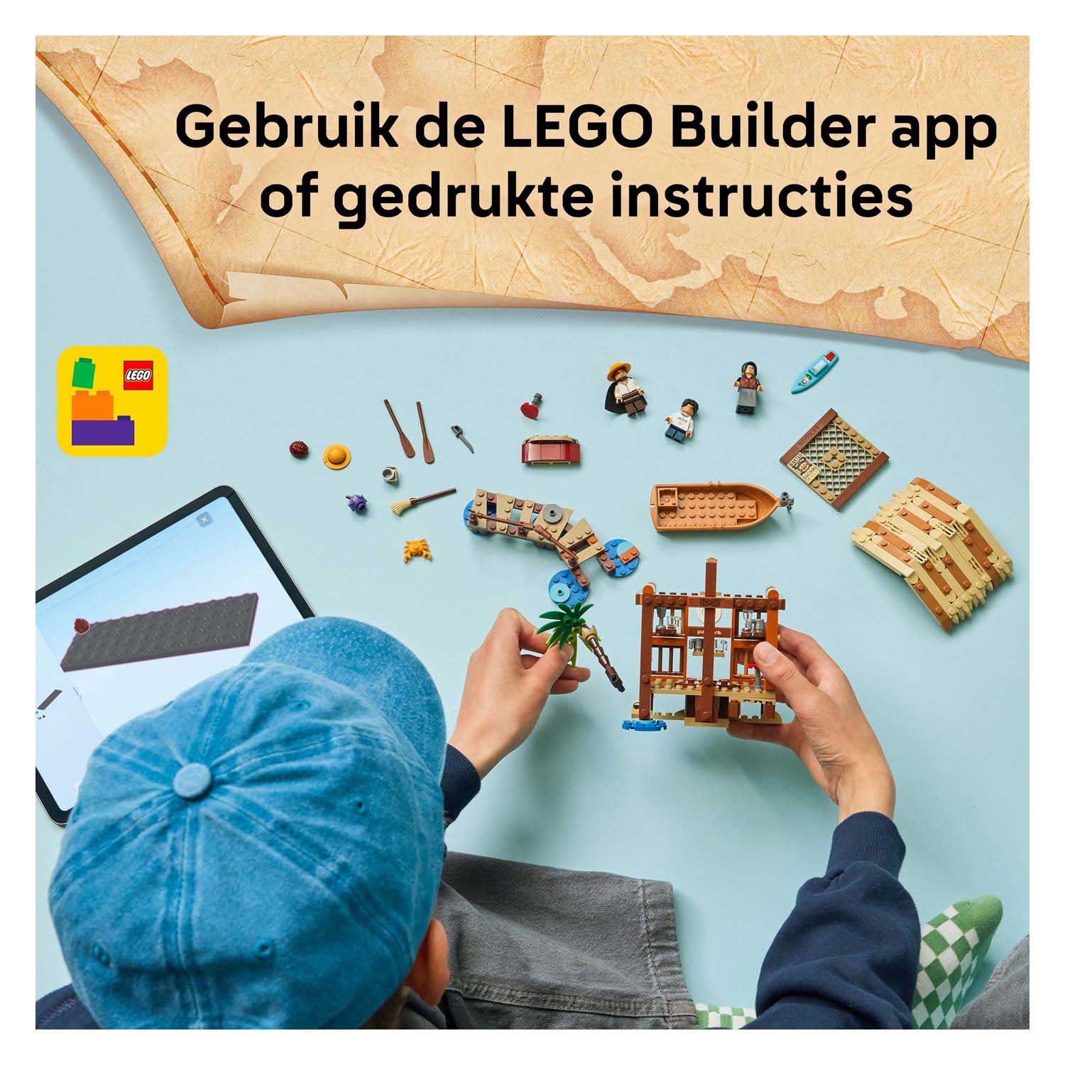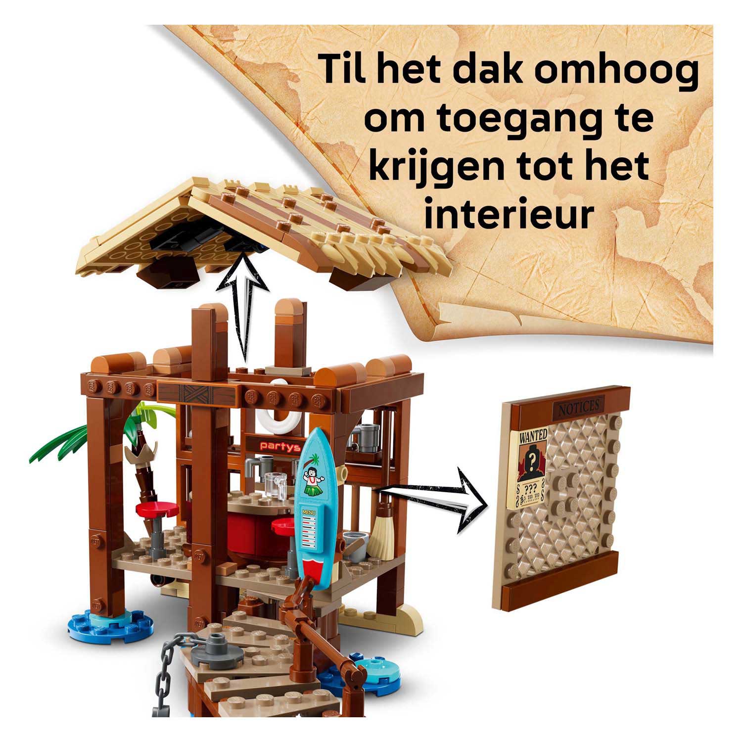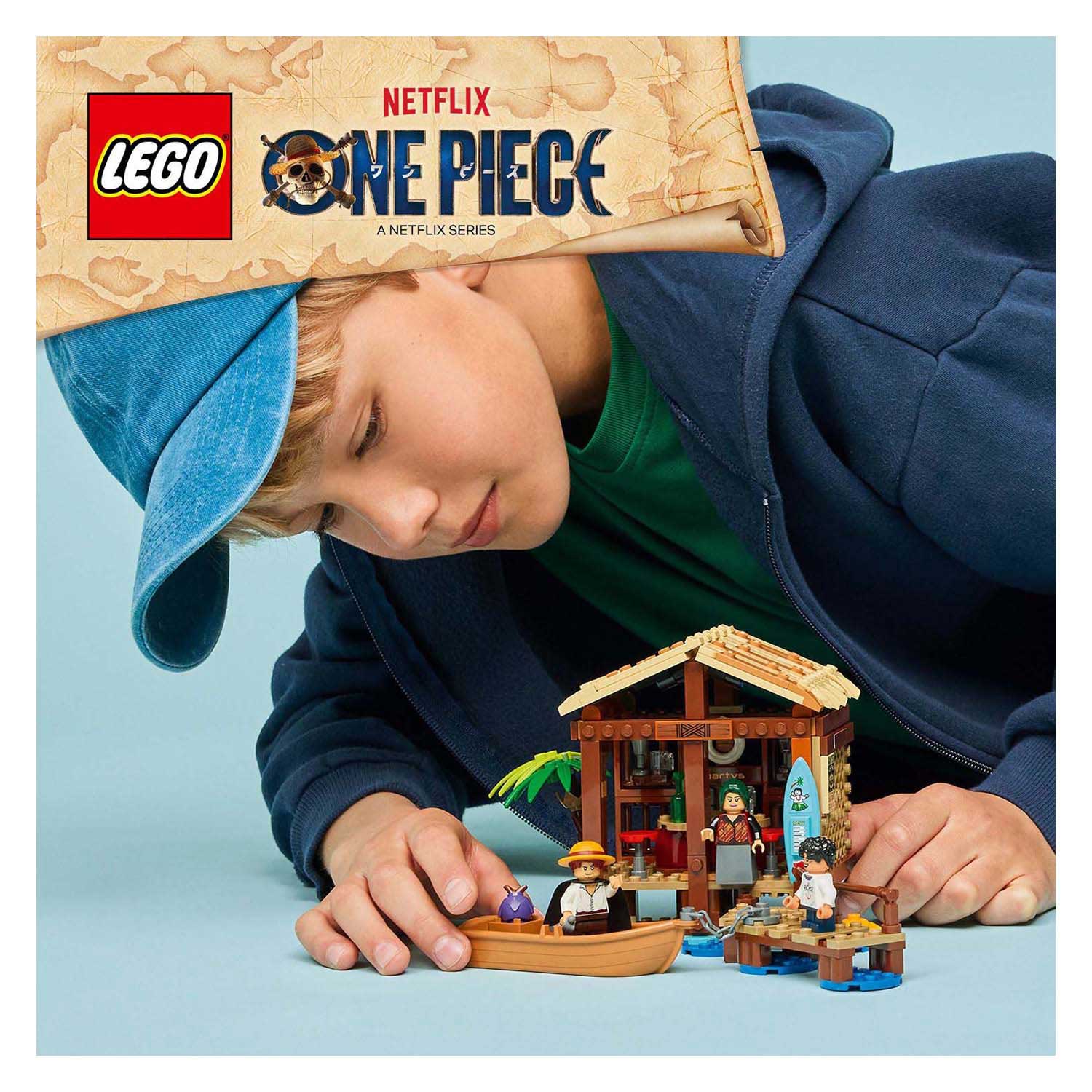 Kinderen kunnen het dak van de strandwinkel verwijderen om toegang te krijgen tot de binnenkant. Hier vinden ze accessoires voor de winkel en leuke klanten. Er is een 'Wanted'-poster om aan de muur te bevestigen en ruimte voor extra 'Wanted'-posters uit andere LEGO® ONE PIECE sets (apart verkrijgbaar). Buiten is een piratenboot met een ketting aan de steiger bevestigd. De set bevat minifiguren van Luffy, Shanks en Makino, 3 bekende personages uit de Netflix serie. Voor extra digitaal plezier kunnen bouwers inzoomen, modellen in 3D draaien en hun voortgang bijhouden met behulp van de intuïtieve LEGO Builder app. De set bevat 299 onderdelen.