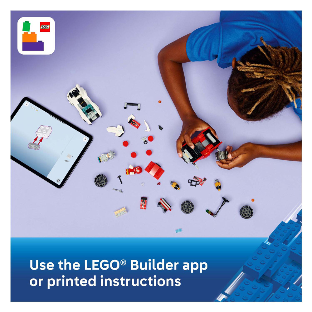 De racewagen en monstertruck zijn een leuk verjaardagscadeau voor gamers en kinderen die dol zijn op voertuigen en avonturen boordevol actie. Combineer de set met andere LEGO Sonic the Hedgehog™ bouwsets in het assortiment (elk apart verkrijgbaar) voor nog meer speelplezier. Bovendien kunnen kinderen vol zelfvertrouwen bouwen met de LEGO Builder app. Ze kunnen inzoomen, hun model draaien, 3D-instructies volgen en hun voortgang bijhouden – allemaal vanuit de app. De set bevat 378 onderdelen.