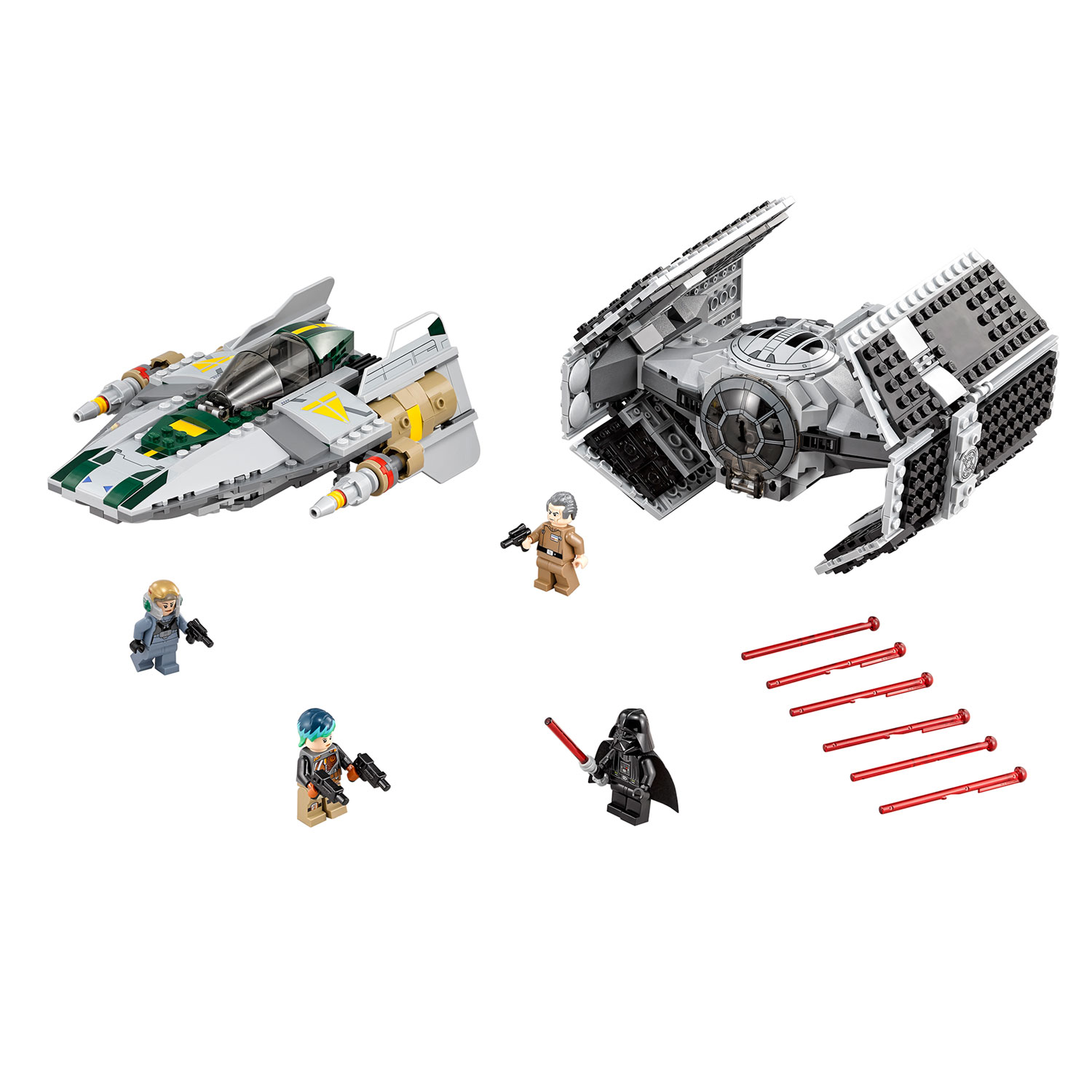 Maak de cockpit open, zet de Lord Vader minifiguur in zijn tie Advanced en ga op jacht naar de A-Wing Starfighter van de rebellen. Open het vuur met het veermechanisme-boordgeschut maar pas op: het rebellentoestel is ook bewapend en beantwoordt het vuur! Wie zal dit hevige gevecht tussen goed en kwaad gaan winnen? Dat beslis jij!