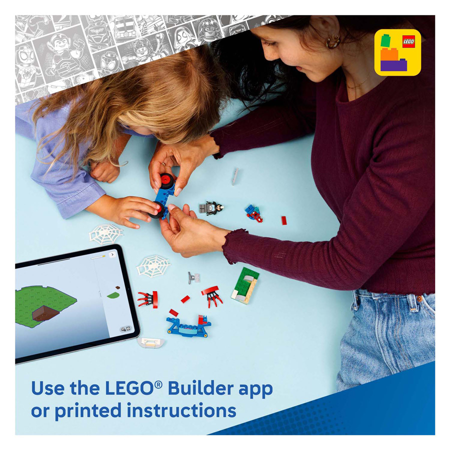 Kinderen helpen Spidey om een gestolen blauwe edelsteen terug te vinden, ontwijken vliegende pizza's die uit Rhino's pizzaoven worden gelanceerd en vangen Rhino in een gigantisch spinnenweb dat ook aan de motor kan worden bevestigd. Deze bouwset is ontworpen voor jonge bouwers en zit boordevol details voor eindeloos fantasierijk speelplezier. Het is een leuk cadeautje voor fans van Spidey en zijn geweldige vriendjes voor een verjaardag of zomaar tussendoor. Inclusief kleurrijke instructies met afbeeldingen, grote startstenen en aparte zakjes met elk 1 bouwmodel, zodat het bouwen snel en leuk blijft. Bovendien kunnen kinderen de LEGO Builder app gebruiken om in te zoomen, hun model in 3D te draaien en hun voortgang bij te houden met de eenvoudig te volgen digitale instructies. Bevat 61 onderdelen.