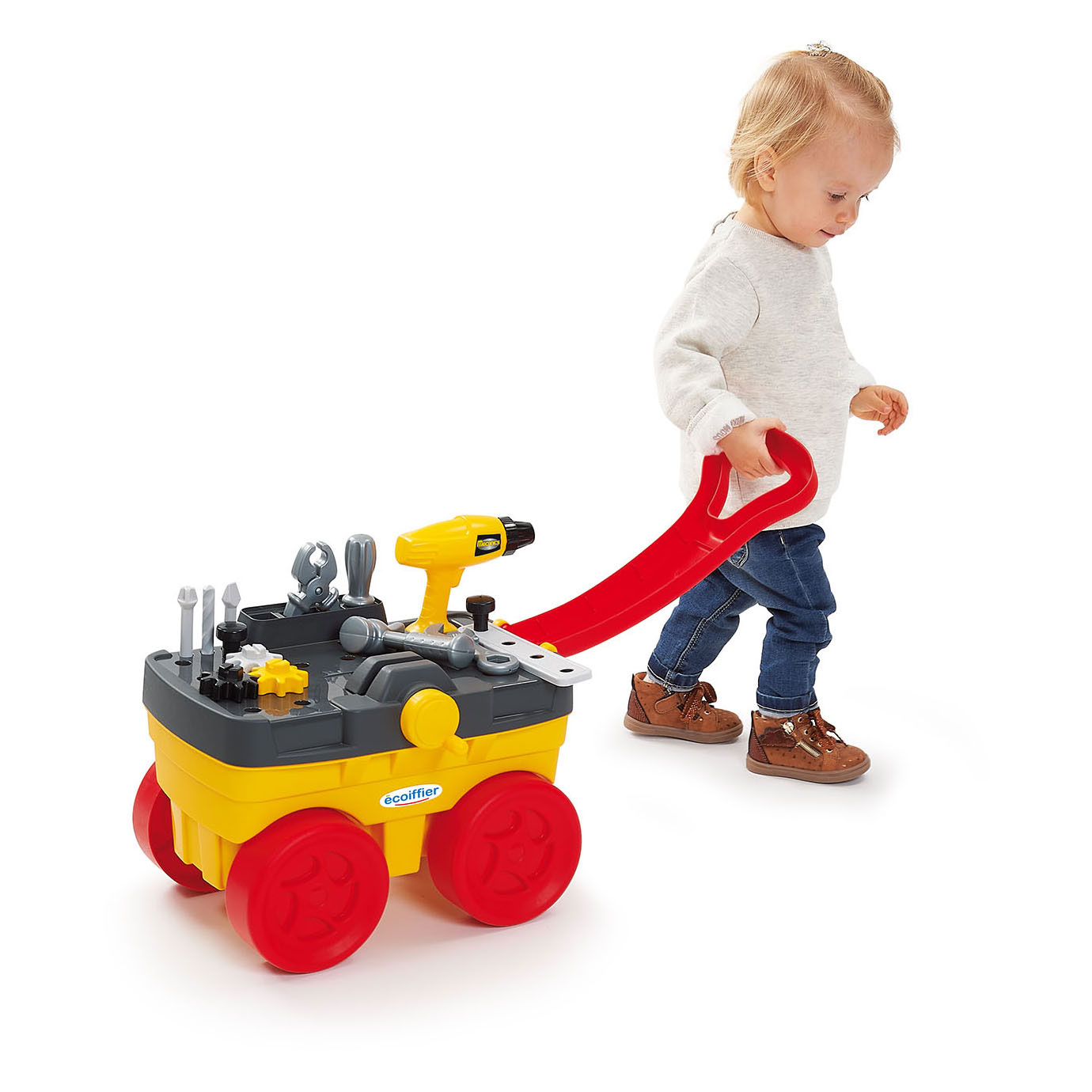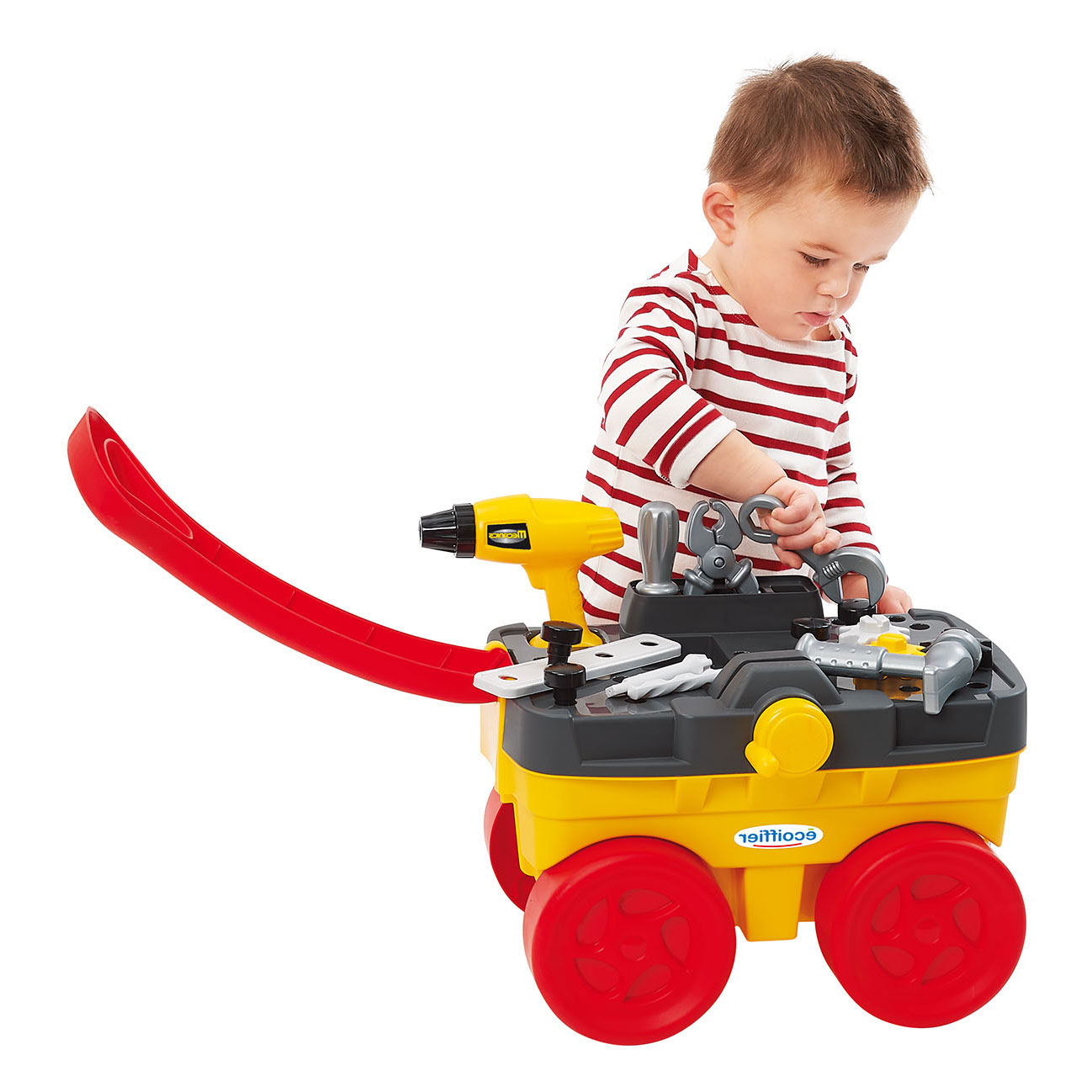 De Ecoiffier Mecanics gereedschapstrolley is een 19-delige speelgoed gereedschapset voor jonge klussers. De trolley bevat onder andere een speelgoedboormachine, hamer, tang en schroevendraaier en is gemakkelijk mee te trekken. Gemaakt van kunststof en geschikt voor kinderen vanaf 18 maanden oud.