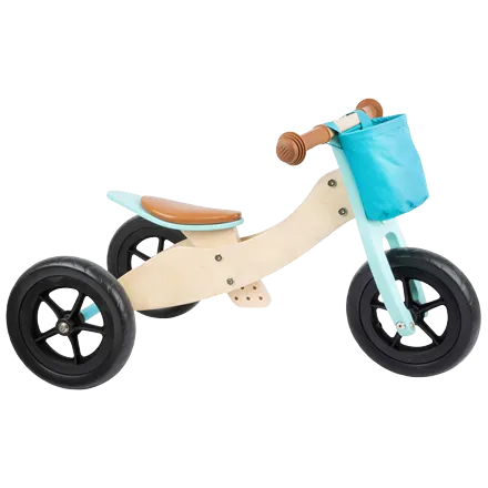 Small Foot - Houten Driewieler en Loopfiets 2in1 Turquoise