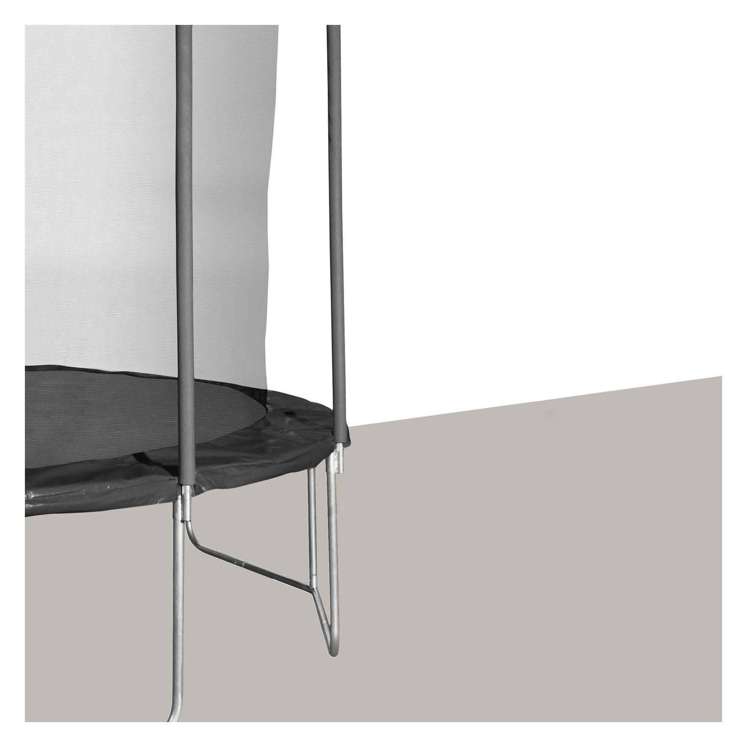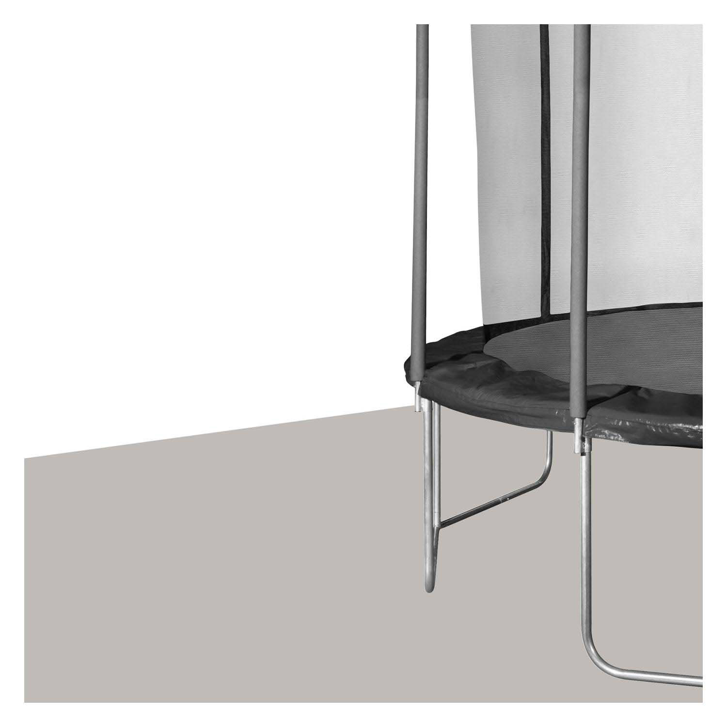 Klaar voor de start, af! De First 400 trampoline is de juiste keuze voor veilig springplezier. Het interne veiligheidsnet kan eenvoudig strak aan de bovenzijde van de stalen ring worden bevestigd. Zo kunnen zelfs de wildste acrobaten ongevalvrij springen en ravotten. De uiterst stabiele constructie met 12 poten en de brede beschermrand die de veren volledig afdekt, behoren tot de hoogwaardige details. Net als de 72 veren zelf, die zorgen voor een mega bounce. Dit model krijgt een grote stabiliteit door het thermisch verzinkte metalen frame, inclusief de acht gevoerde hoofdstokken.