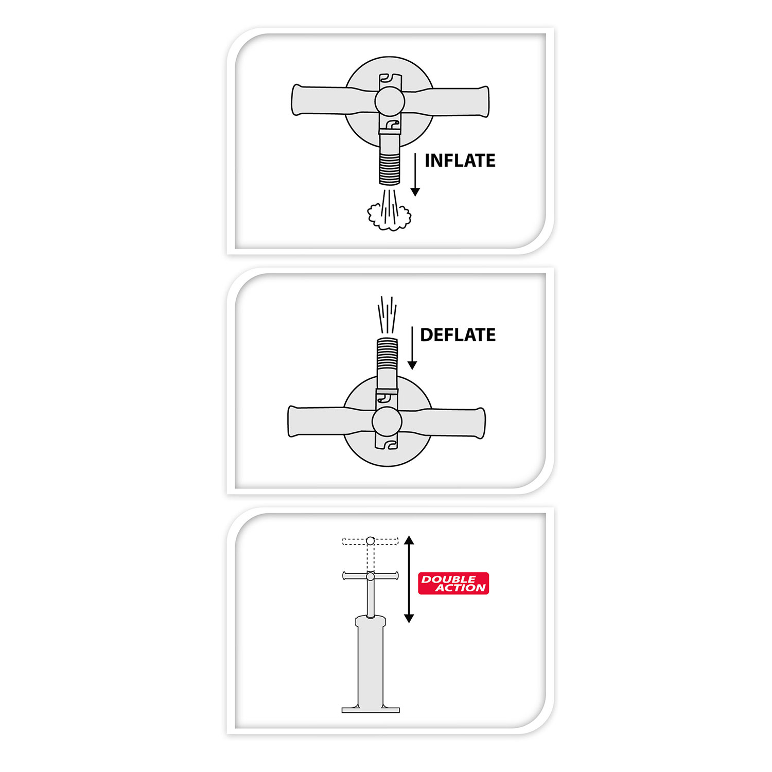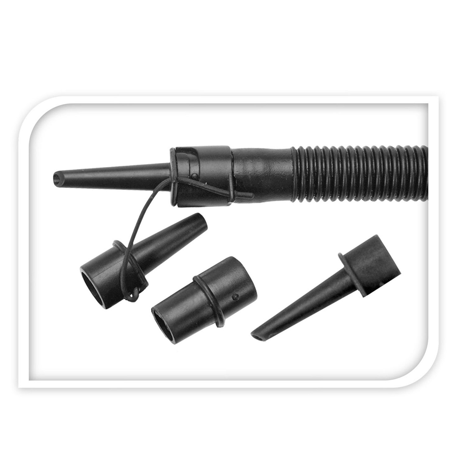 Praktische handpomp met dubbele werking; oppompen en leegzuigen. Inclusief 4 opzetmondjes.