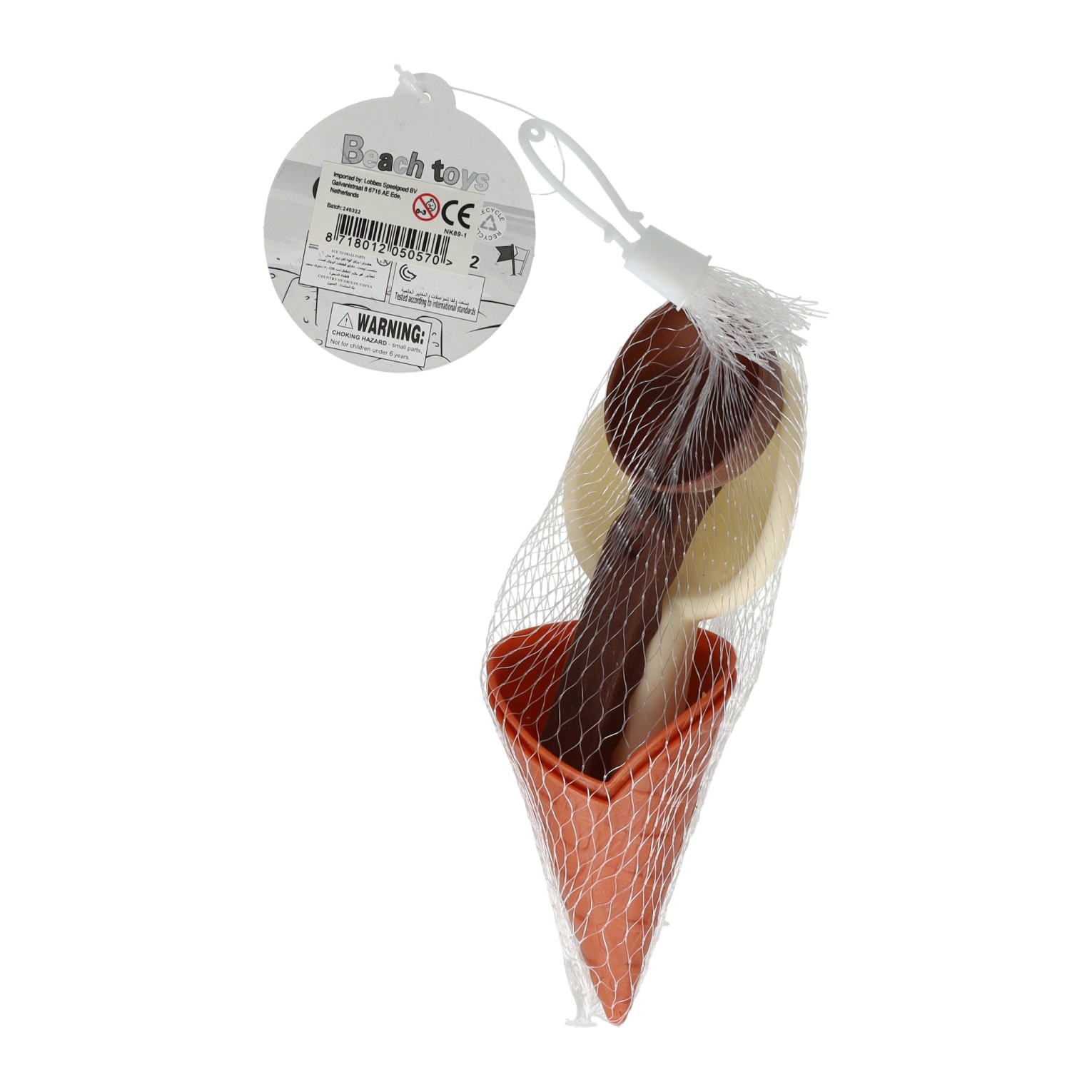 Zand ijsjes-set, met 2 hoorntjes en 2 ijsscheppen. Geschikt voor kinderen vanaf 3 jaar.