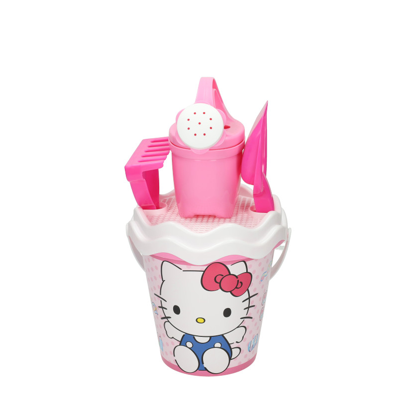 Hello Kitty set met harkje, schepje, emmertje, zeef en gietertje.