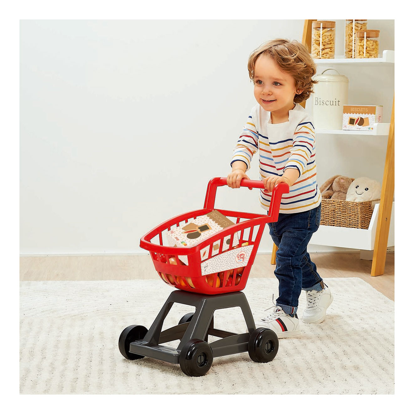 De Ecoiffier Gevulde Winkelwagen bestaat uit een stevige speelgoedwinkelwagen met 20 realistische boodschappen. Gemaakt van kunststof en geschikt voor kinderen vanaf 18 maanden oud.