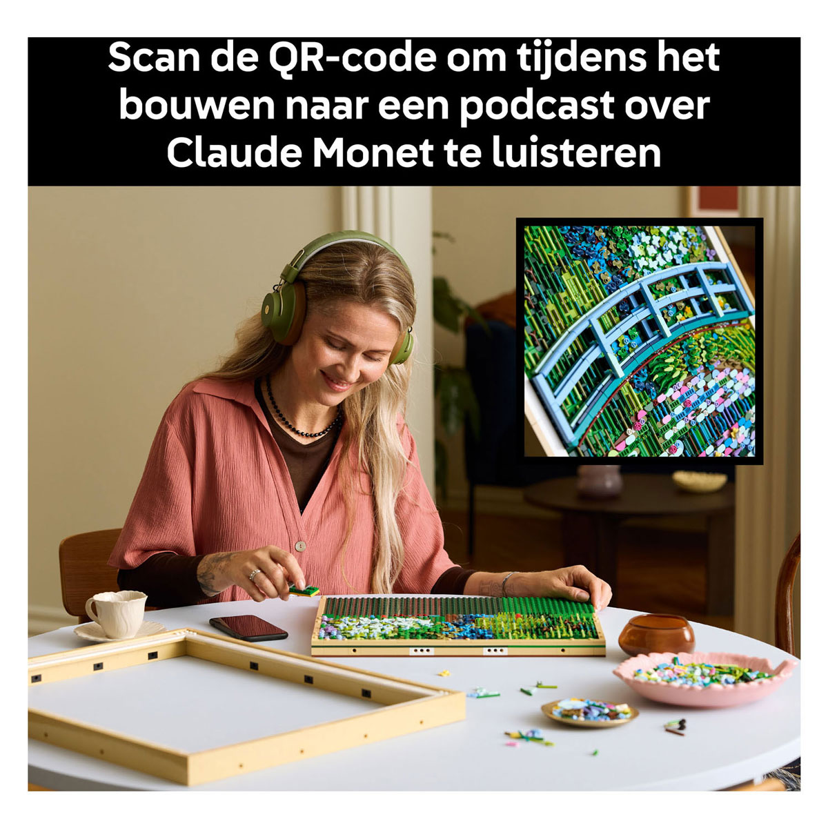 LUISTER NAAR DE PODCAST – scan de QR-code in het instructieboekje om te luisteren naar een podcast over Claude Monet en de inspiratie voor zijn kunst met een conservator van het Metropolitan Museum of Art