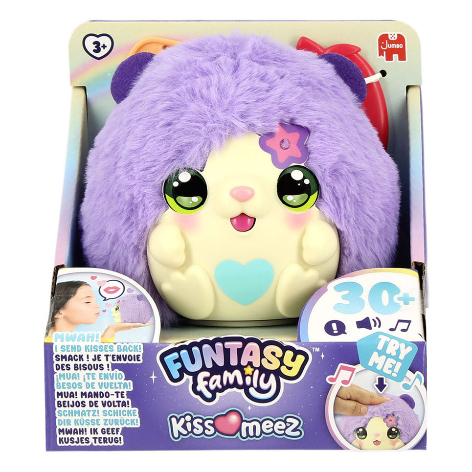 Maak kennis met de Kiss - Meez Hamster, een vrolijke interactieve plush knuffel die dol is op kusjes en knuffels! Geef haar een kusje en ze stuurt er meteen eentje terug. Aai haar zachte vacht of kietel haar buikje en luister hoe ze giechelt van plezier.Kam haar pluizige haar en geef haar haar favoriete hapje voor extra verzorgingsplezier. Met meer dan 30 reacties is deze interactieve hamster een lief speelkameraadje dat verzorgend spel stimuleert. Funtasy Family Funtasy Family is een speels merk vol interactieve knuffels die kinderen laten lachen, verrassen en verzorgen. Elk lid van de Funtasy Family heeft een eigen persoonlijkheid en reageert op aanraking, geluid en spel. Van zingen en giechelen tot eten geven en knuffelen: deze interactieve plush speelgoed zorgt keer op keer voor een magisch speelmoment. De producten van Funtasy Family stimuleren fantasierijk en verzorgend spel en dragen bij aan emotionele ontwikkeling. Met verrassende functies, zachte materialen en vrolijke geluiden zijn ze perfecte maatjes voor kinderen.