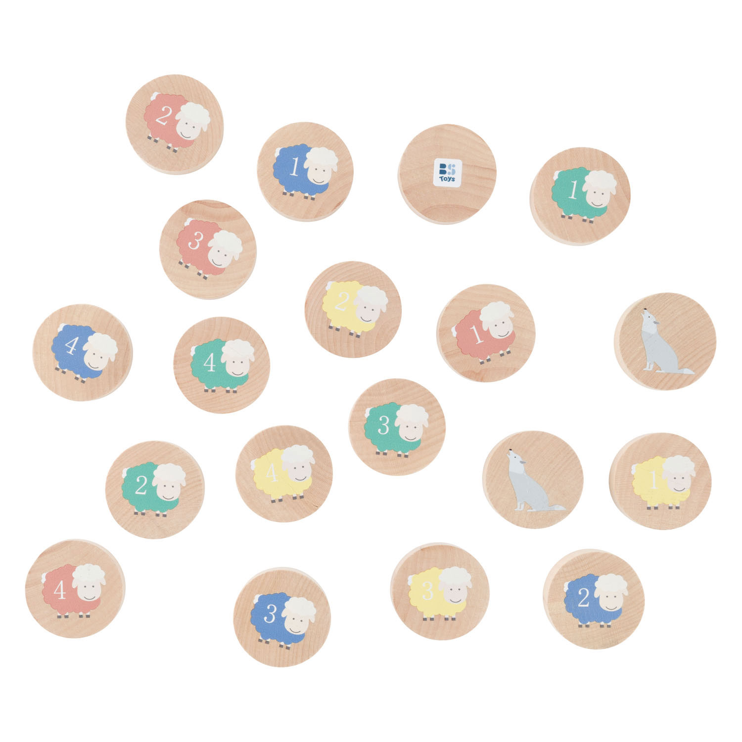 Vang de schapen, pas op voor de wolven en help de herder om de kudde te redden in dit leuke houten tikkertje-spel!