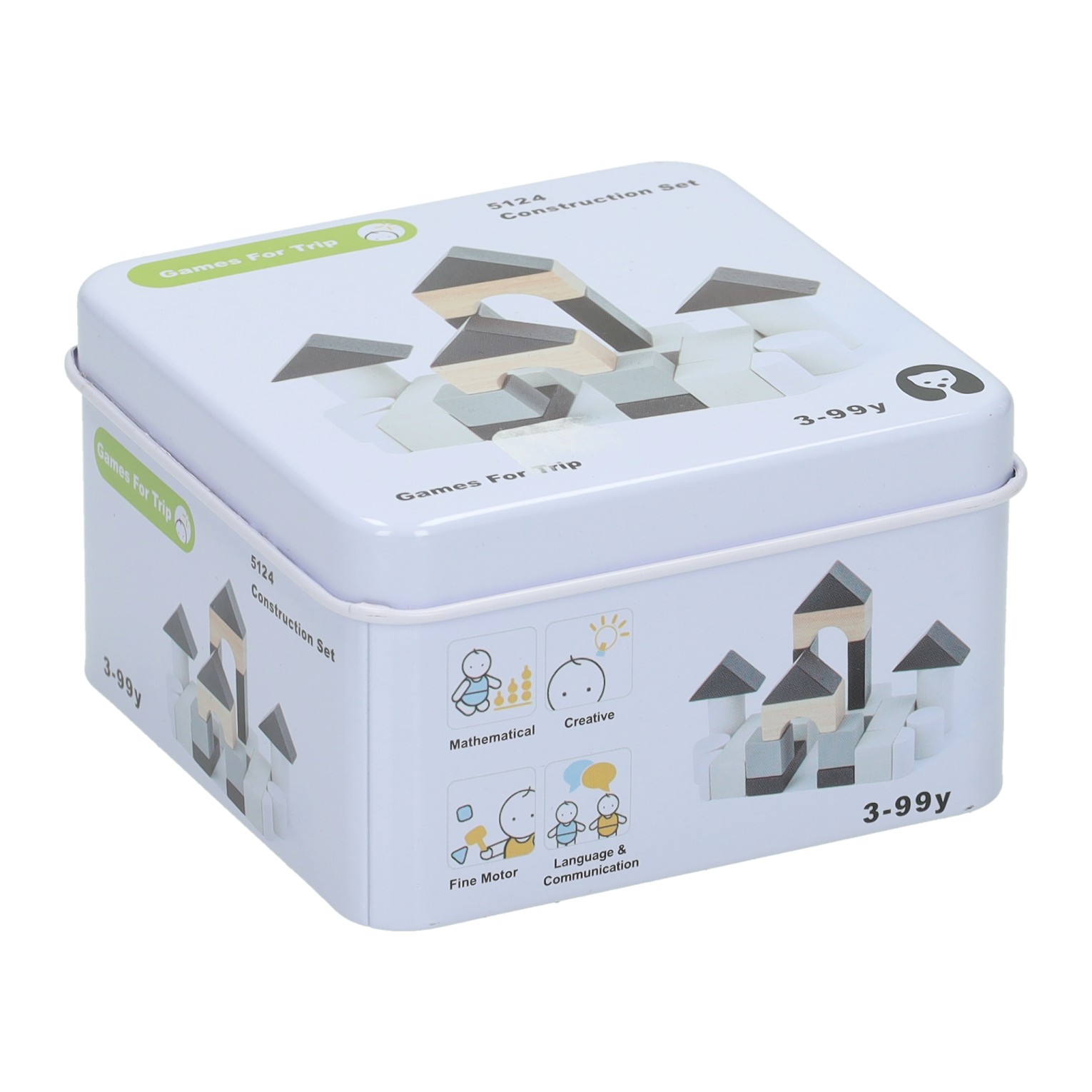 Houten Spelletje in Blikje - Bouwblokken