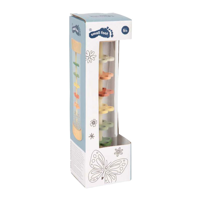Het geluid van regen in de lente! Deze regenmaker combineert zachte geluiden met een liefdevol ontworpen design, waardoor het een zintuiglijke ervaring is voor jonge ontdekkers. Of het nu gaat om een rustgevend geluidsspeeltje, een eerste ritme-instrument of een kleurrijk rammelspeeltje: de doorzichtige plastic bol onthult glinsterende kralen die door kleurrijke geperforeerde plaatjes in de vorm van bloemen druppelen. Een fascinerend spel voor ogen en oren dat zowel baby's als peuters zal bekoren!