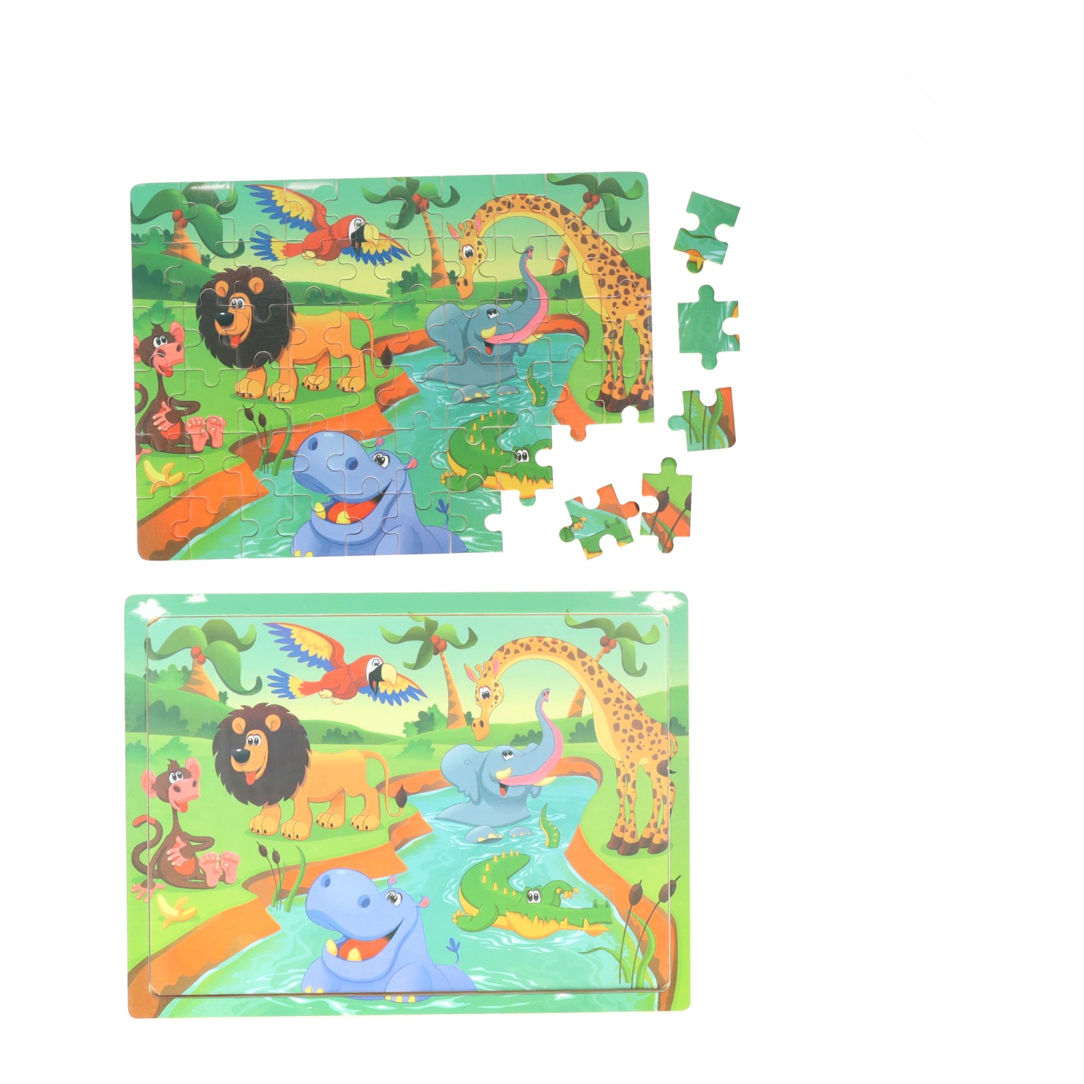 Houten puzzel Savanne thema. De puzzel heeft 60 stukjes en is 22,5 cm x 30 cm groot.