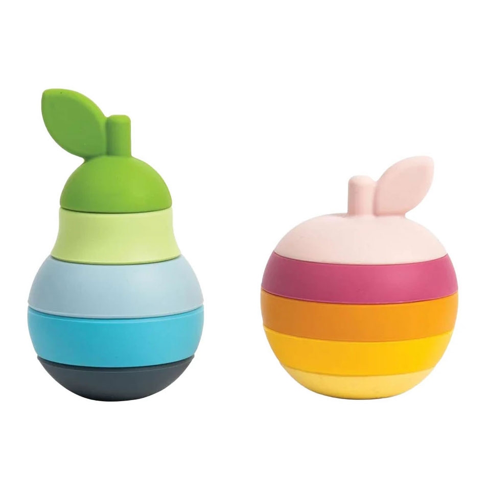 Aanraken, voelen, kauwen en stapelen! Deze stapelset met appels en peren is een stapelspeeltje met een fruitig tintje. Elke stapelaar wordt geleverd met vijf kleurrijke stukken in verschillende maten, waarmee kleintjes hun appel- en perenvormen kunnen bouwen. Deze siliconen babyspeeltjes kunnen ook worden gebruikt als bijtringen om pijnlijk tandvlees te kalmeren.