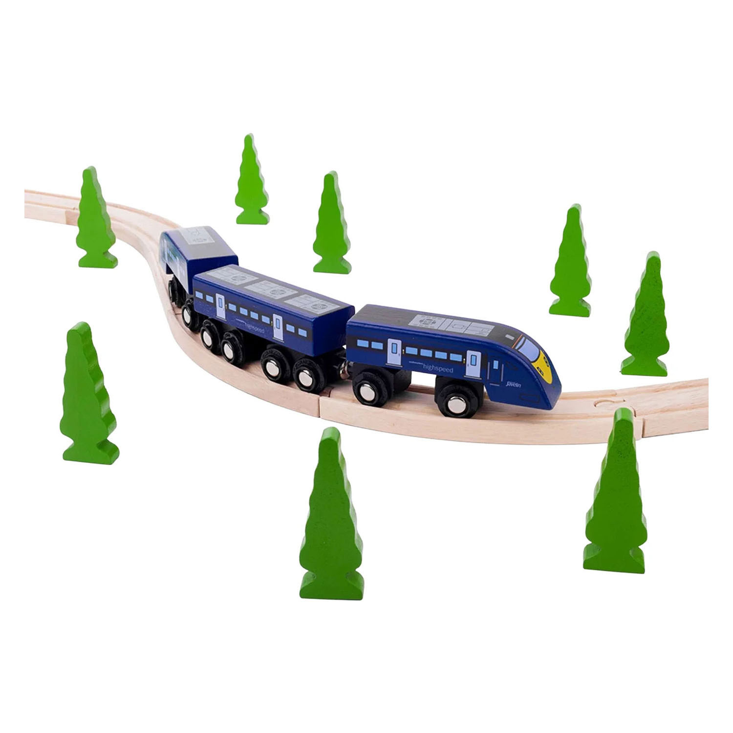 Reis in stijl met de Southeastern High Speed 1-trein! Deze houten treintrein is het resultaat van een samenwerking tussen Bigjigs Toys en Southeastern. HS1 is een 108 km lange hogesnelheidslijn die Londen met de Kanaaltunnel verbindt. De trein haalt een topsnelheid van 300 km/u.